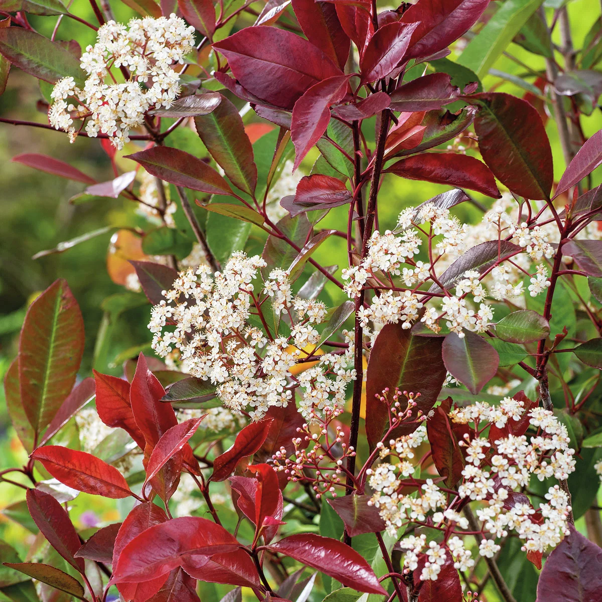 Mit Red Robin wird es nie langweilig. Der wunderschöne leuchtend rote Jungaustrieb dieser attraktiven Glanzmispel wird im Laufe des Jahres immer grüner und belebt damit auch zur Herbst- und Winterzeit auf charmante Art die Umgebung. Das farblich attraktive, lanzettliche Laub dieser immergrünen Pflanze schmücken von Mai bis Juni kleine, rippenförmige weiße Blüten, die eine beliebte Bienenweide sind. Bei einer Wuchsbreite von 100–200 cm ist bei der ganzjährig möglichen Pflanzung ein Abstand von 30–40 cm empfehlenswert. Das aus Ostasien stammende Gehölz ist erfreulich unkompliziert und benötigt nur wenig Pflegeaufwand. Der Boden sollte durchlässig und humos sein. Bei der Standortfrage ist Red Robin sehr anpassungsfähig, er gedeiht an vollsonnigen bis schattigen Plätzen. Der Düngebedarf ist ebenso wie der Wasserbedarf gering, Red Robin wird gegossen, wenn die oberste Bodenschicht trocken ist. Wir empfehlen Ihnen zwei Rückschnitte im Jahr. Wenn Sie das Blattschmuckgehölz bis auf 20–30 cm über dem Boden zurückschneiden, treibt es wieder aus.