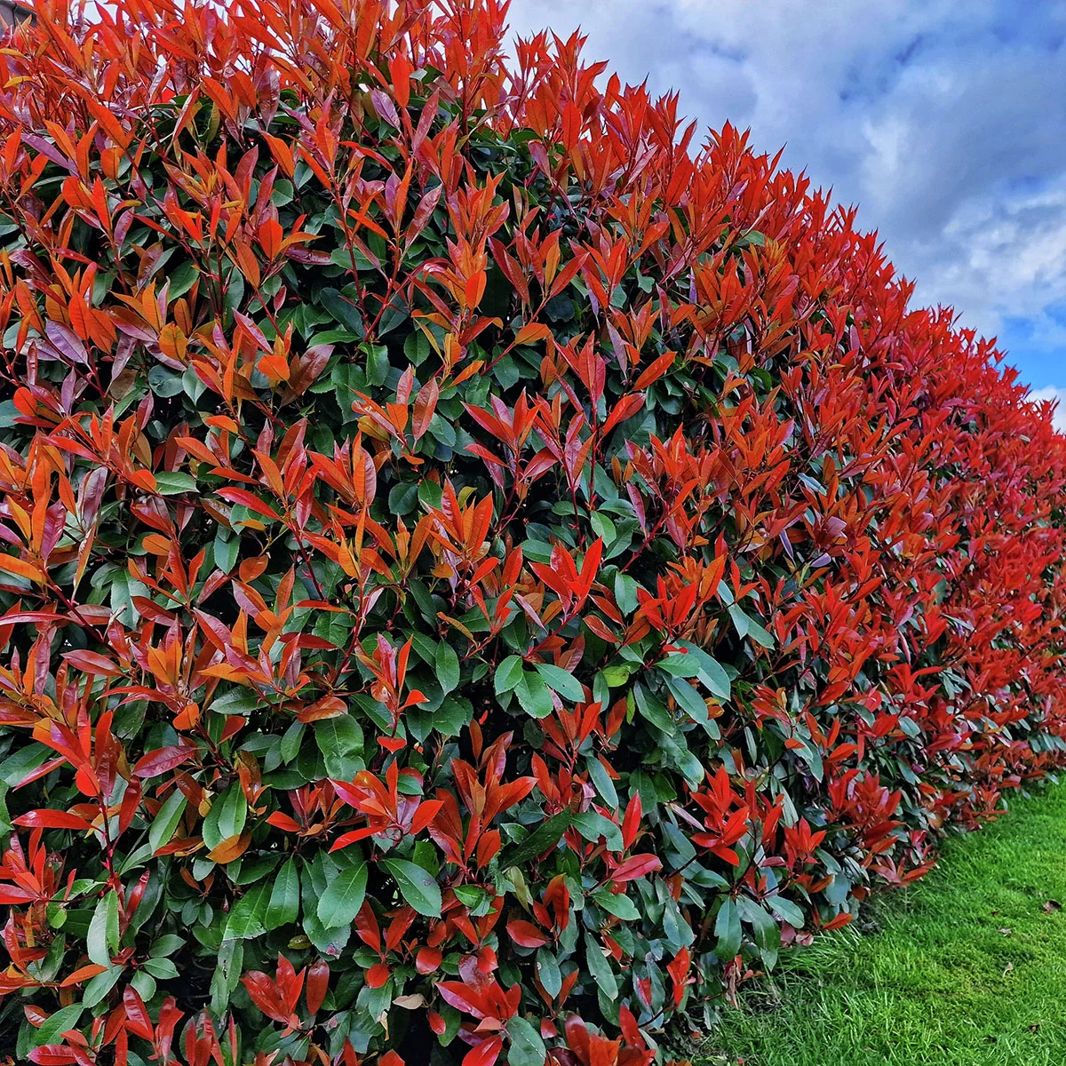 Die frischen, leuchtend roten Austriebe der Glanzmispel stellen einen attraktiven Hingucker dar, besonders, wenn sich im Frühsommer die kontrastreichen weißen Blüten dazugesellen. Im Herbst bildet die farbenfrohe Heckenpflanze einen bezaubernden Fruchtschmuck.
