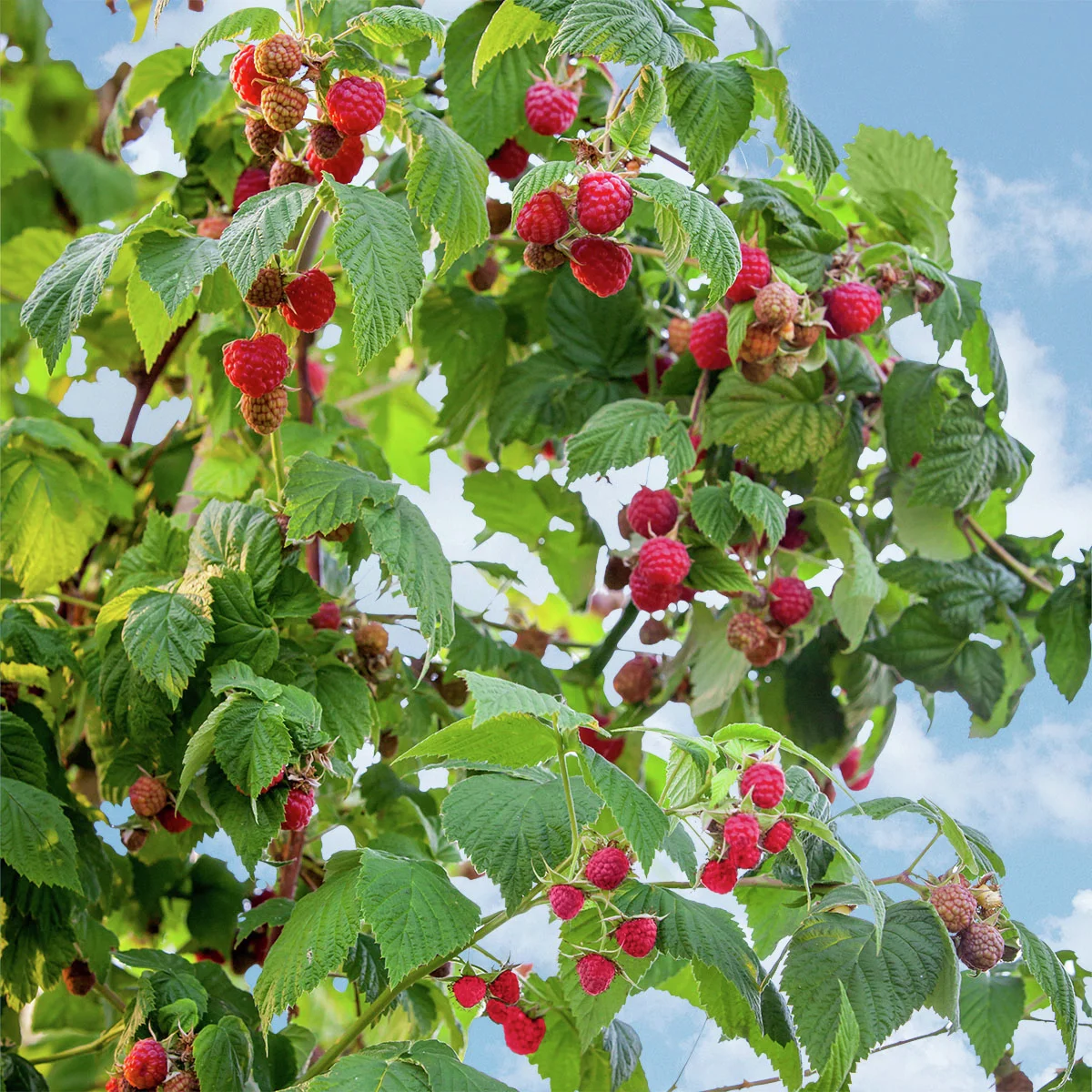 Himbeeren gedeihen am besten an einem sonnigen bis halbschattigen Standort, der idealerweise auch windgeschützt ist. Das Substrat sollte humos und leicht sauer sein. Gießen Sie die Himbeere am besten mit weichem Leitungs- oder Regenwasser, denn sie reagiert empfindlich auf Kalk. Im Sommer sollte die Pflanze gleichmäßig feucht gehalten werden, insbesondere an heißen Tagen, denn der flachwurzelnde Strauch kann schnell austrocknen. Gepflanzt werden kann das ganze Jahr über bei frostfreiem Wetter, die ideale Pflanzzeit für Beerensträucher ist jedoch der Herbst oder das zeitige Frühjahr. Wir empfehlen einen Pflanzabstand von 80–100 cm, damit sich die Himbeere voll entfalten kann. Der Schnitt der mehrjährigen Maddalena ist wunderbar einfach: Nach der Ernte im November wird die Pflanze einmal bodennah zurückgeschnitten. Je eine Gabe eines organischen Beerendüngers im Frühjahr sorgt für einen kräftigen und gesunden Neuaustrieb.