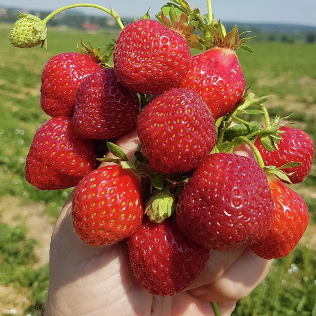 Aroma-Erdbeere ist einmalig dunkel, ja fast schwarz gefärbt und beherbergt dabei ein ganz phantastisches Aroma! Markant zieht sich die dunkle Farbe komplett durch die mittelgroßen bis großen Früchte. Der typisch hohe Pflanzenaufbau lässt die herzförmigen Früchte regelrecht in der Sonne baden und beschert damit hohe Erträge (ca. 500 g Ertrag pro Pflanze) und zuckersüßen Geschmack.