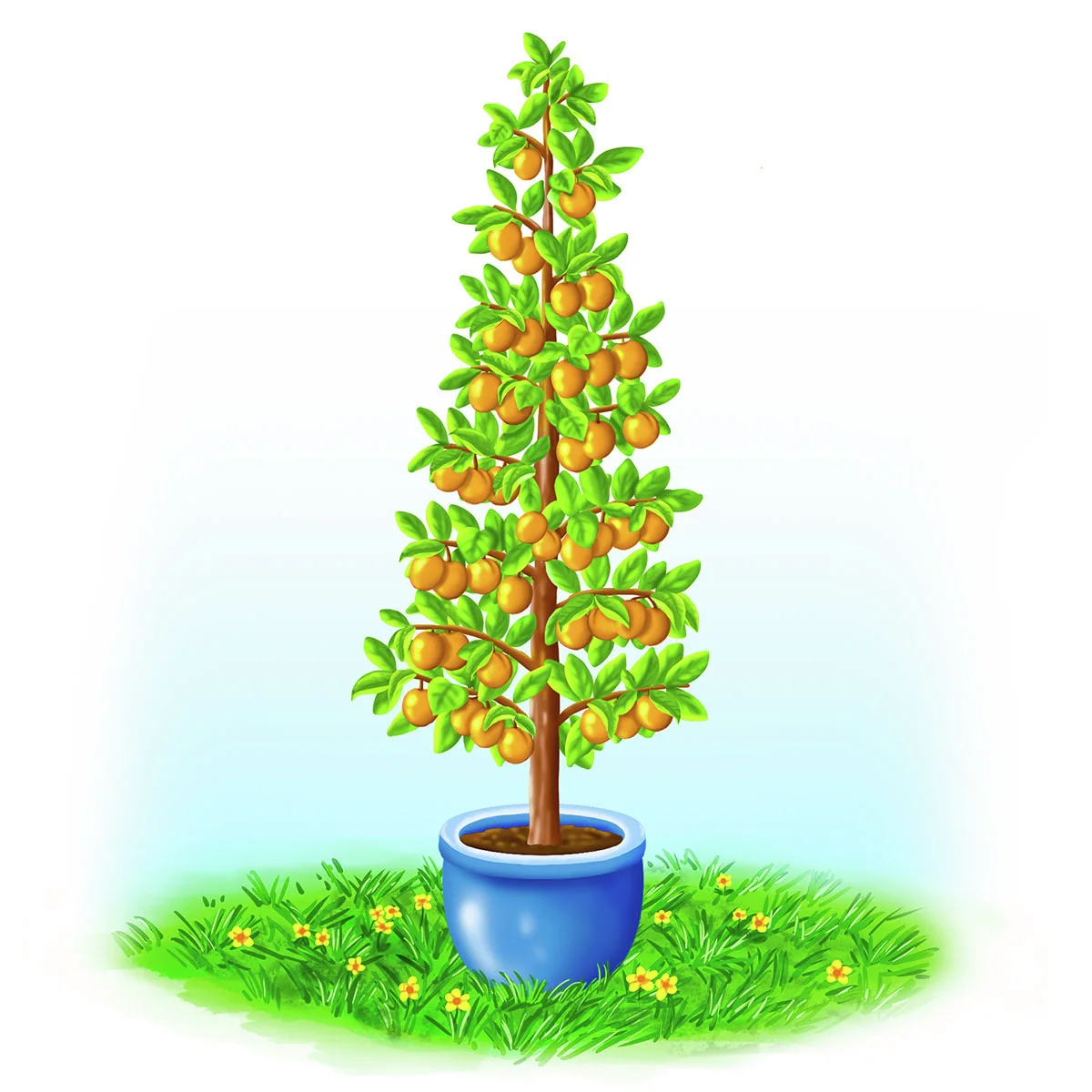 Mit ihrer schlanken und kompakten Wuchsform ist die Säulen-Mirabelle für die Kübelpflanzung perfekt geeignet. Sie wird nur etwa 200–300 cm hoch und ist darüber hinaus auch noch selbstfruchtbar. So beschert dieses kompakte Bäumchen auch Balkongärtnern eine reiche Ernte. Im Garten brilliert die Mirabelle gleichermaßen als Solitärgehölz oder in Gesellschaft von anderen Obstgehölzen wie Apfel- oder Birnbäumen.