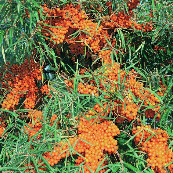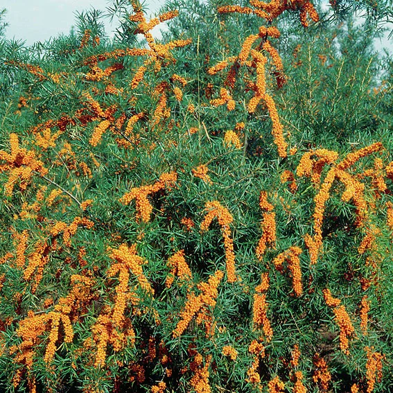 - Je 1 männliche und 1 weibliche Sanddornpflanze