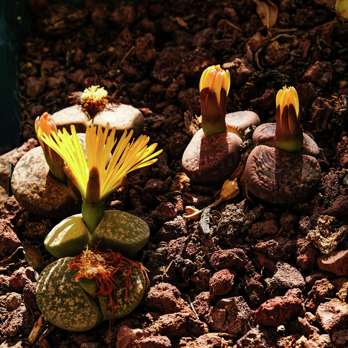 Die Heimat der Lebenden Steine liegt in den kargen Landschaften des südlichen Afrikas, wo sie sich an die einzigartigen Bedingungen von Regionen mit winterlichem Niederschlag und langen sommerlichen Dürreperioden angepasst haben.