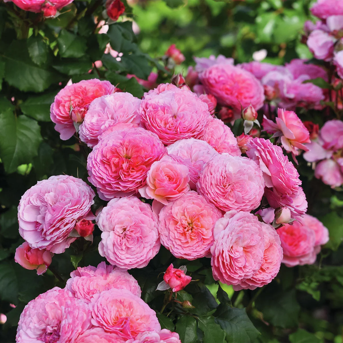 Die essbaren Rosenblüten, 'Theo Clevers‘TM Taste of Love® schmecken und duften intensiv nach Erdbeere. Eine gesunde und robuste, öfterblühende Beetrose, die kompakt im Wuchs ist und über Wochen dichte Büschel mit rosa-apricotfarbenen, enorm dichtgefüllten, relativ kleinen Blüten zeigt. Lassen Sie sich die köstlichen Blätter dieser dekorativen Rarität in Süßspeisen, Marmelade, Eis oder Tee munden. Gut gekühlt sind die - am besten stets jung geernteten - Blätter bis zu 10 Tage lang haltbar.