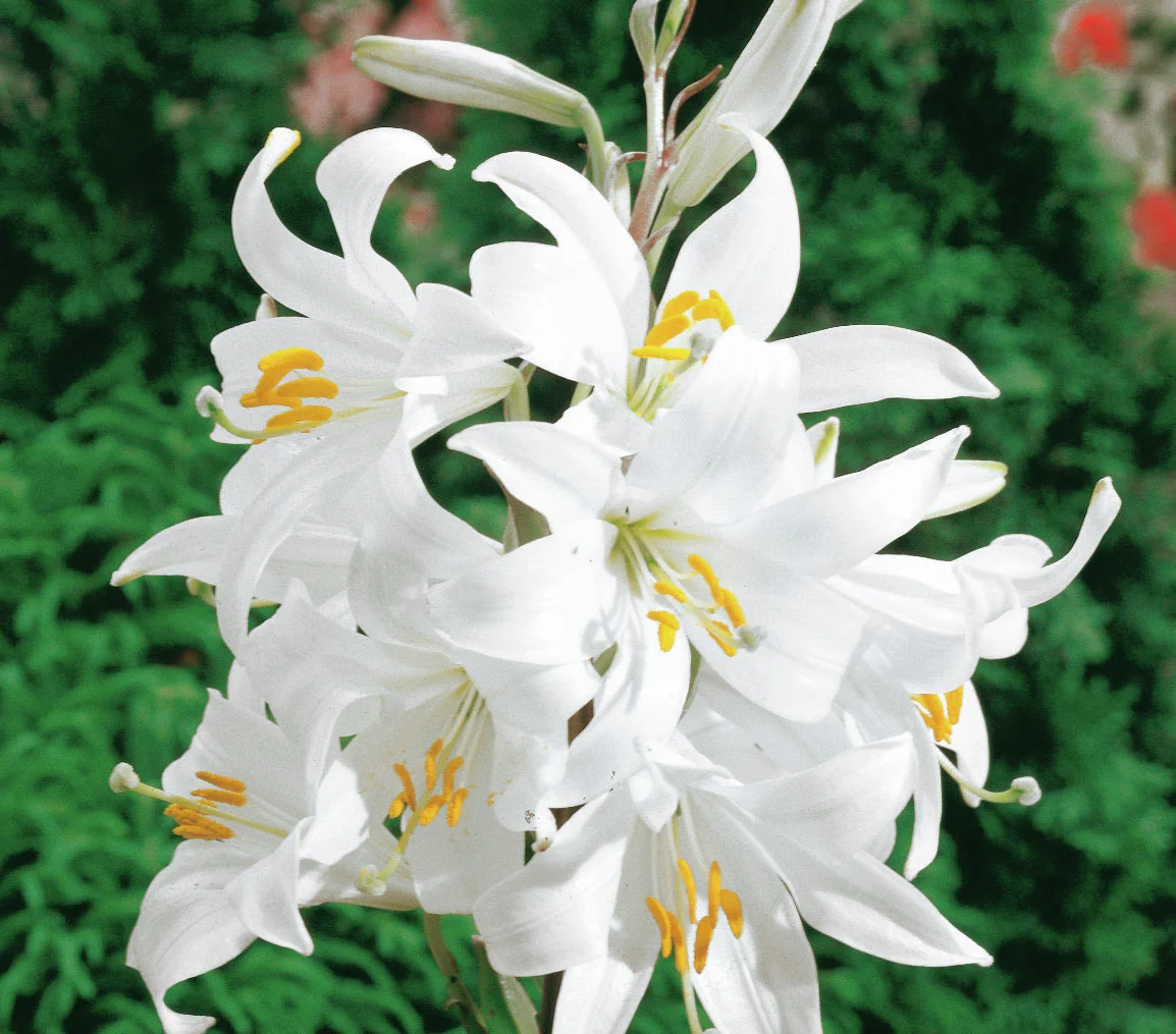 Tipp: Die Madonnenlilie mit ihren rein weißen, duftenden Trichterblüten gehört zu den ältesten und schönsten Gartenlilien. Sie sind mit leichtem Winterschutz aus Kompost, Laub oder Reisern winterhart und blühen jedes Jahr aufs Neue.