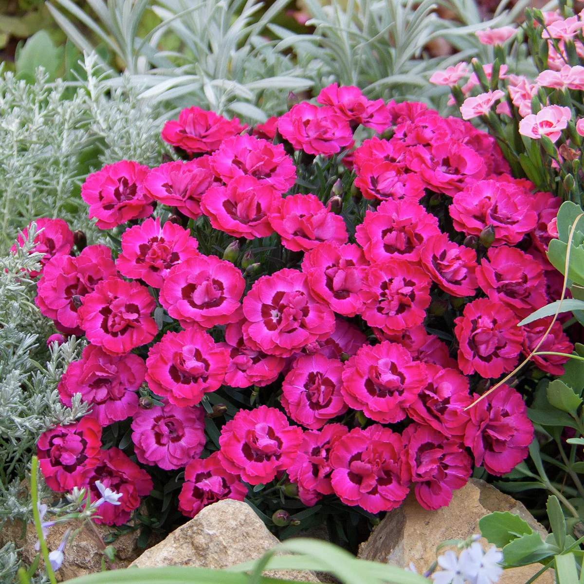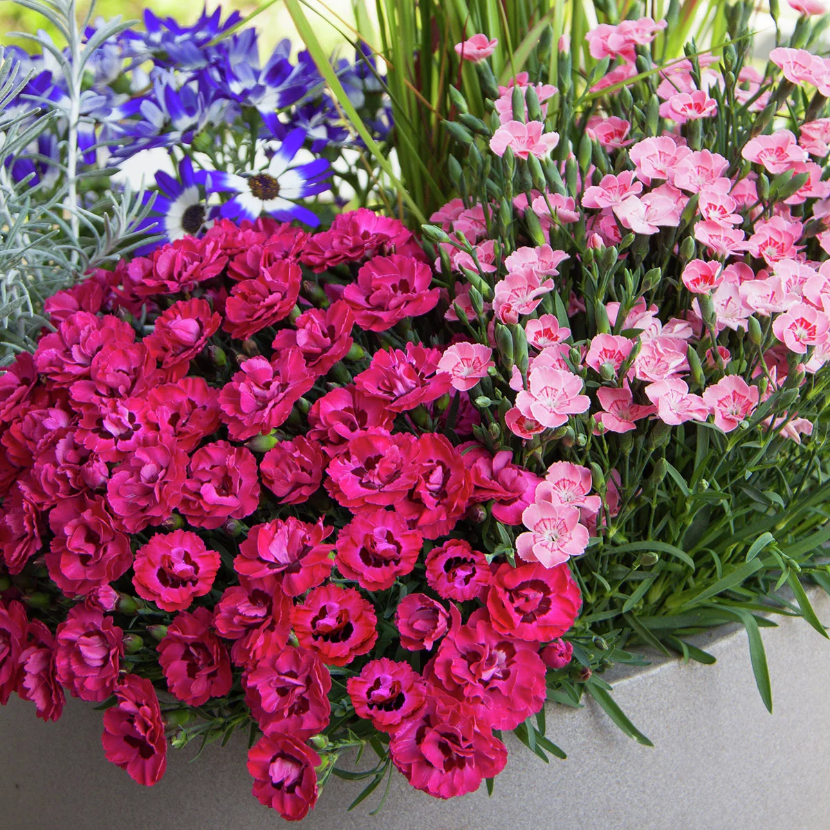 Die Gartennelke Early Love kommt zum Sommer grade recht, denn mit ihren großen gefüllten Blüten ist sie ein echter Dauerblüher für Terrasse und Gartenbeet. Ihre intensive Farbe in Pink mit rotem Ring sorgt für moderne Farbtupfer und wird begleitet von einem leichten Duft. Ihr runder Wuchscharakter lässt sie wie ein ganzes Blumenbouquet wirken.