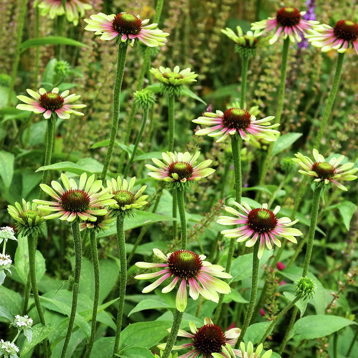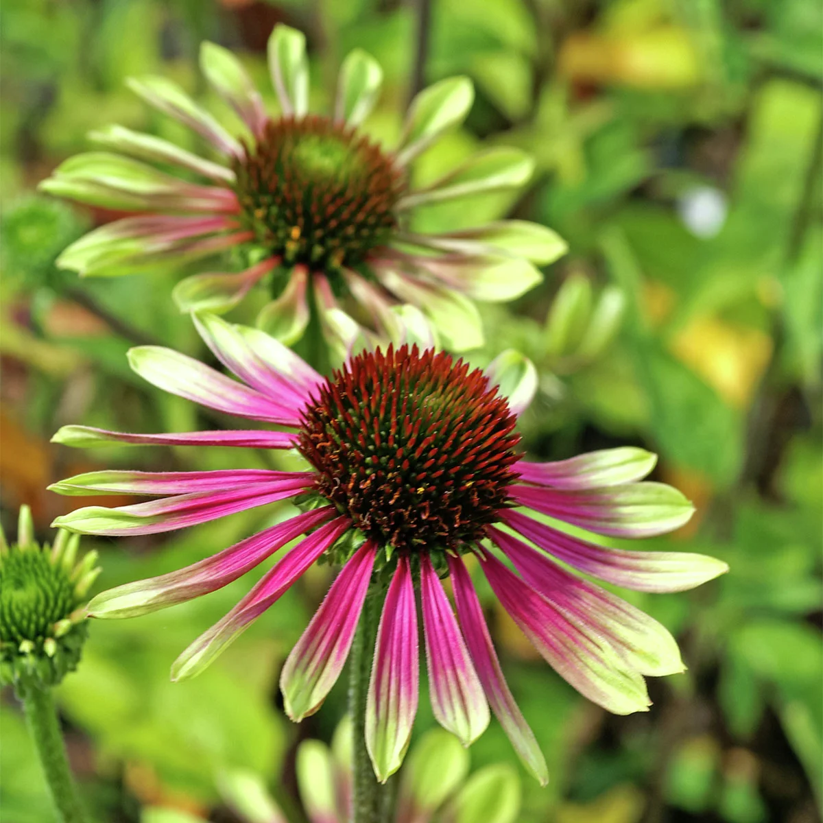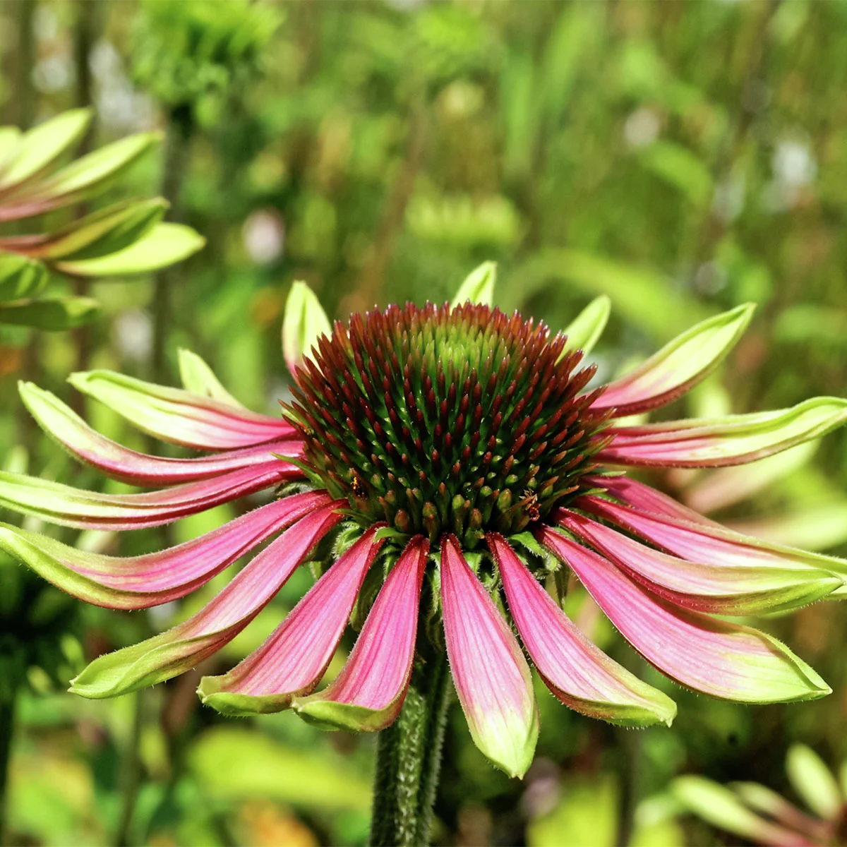 Dass Sonnenhüte echte Schmetterlingsmagneten sind, ist bekannt. Und trifft auch auf den reichblühenden Sonnenhut Green Twister zu, der mit extravaganten dunkelgrünen Blüten, die sich langsam rosa färben, auf sich aufmerksam macht. Ein spektakulärer Anblick.
