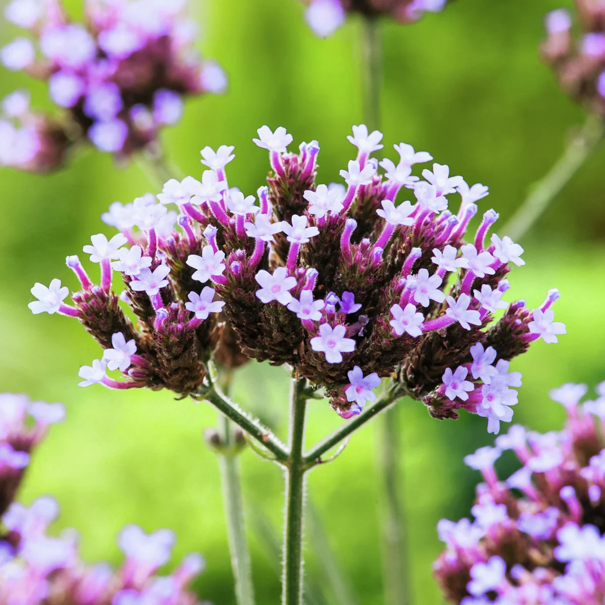 Diese beliebte Staude aus Südamerika lockert wunderbar jedes Staudenbeet auf. Ihre dicht gefüllten Blütenkugeln scheinen schwerelos auf den filigranen und fast blattlosen Stängeln zu schweben. Diese bilden mit ihrem Nektar ein willkommenes Ziel für viele Schmetterlinge. Mit ihrer Standfestigkeit und der langen Blütezeit ist das Eisenkraut eine Bereicherung für Ihren sommer- bzw. herbstlichen Garten. Besonders gut harmoniert es mit Gelb und Orangetönen.