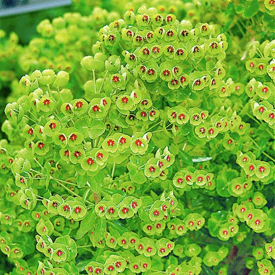 Eigenschaften: Die Grünblüte besticht durch ihre phänomenale Blüte. Dabei handelt es sich tatsächlich um Hochblätter, die durch ihren grünen Farbton die innen liegende eigentliche Blüte hervorheben und Insekten anlocken sollen. Blütezeit Mai-Juli. Die Staude gehört zu den Wolfsmilchgewächsen und ist meist immergrün. Sie wird 40-50 cm hoch und breit. Die Pflanze hält Wühlmäuse fern.