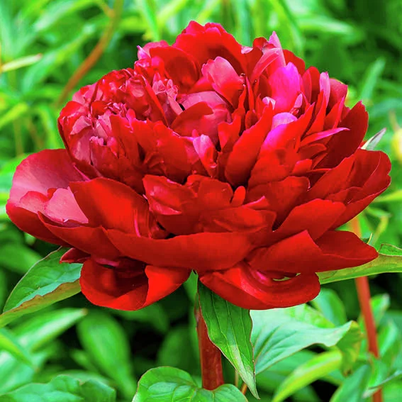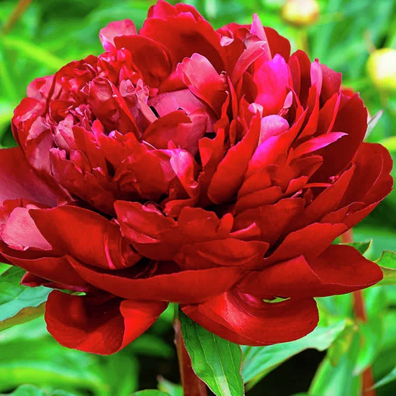 Edel und erhaben präsentiert sich diese elegante Pfingstrose. Peter Brand blüht in einem außergewöhnlich tiefen Rubinrot auf.