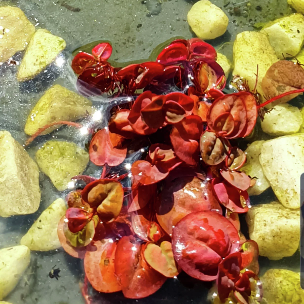 Aber auch im Aquarium oder Glasgefäßen macht sie sich freischwimmend mit den roten Wurzeln ausgezeichnet.