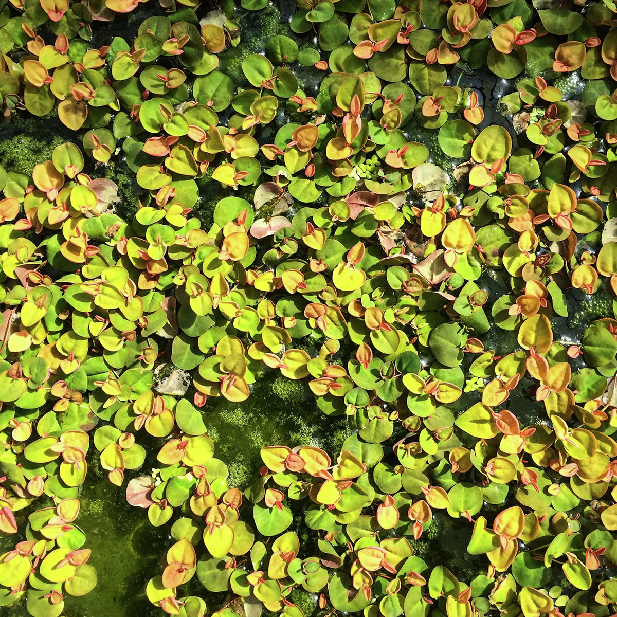Die Schwimm-Wolfsmilch kann flach bis zu einer Breite von 120 cm heranwachsen und spendet so den Wasserbewohnern wohltuenden Schatten.