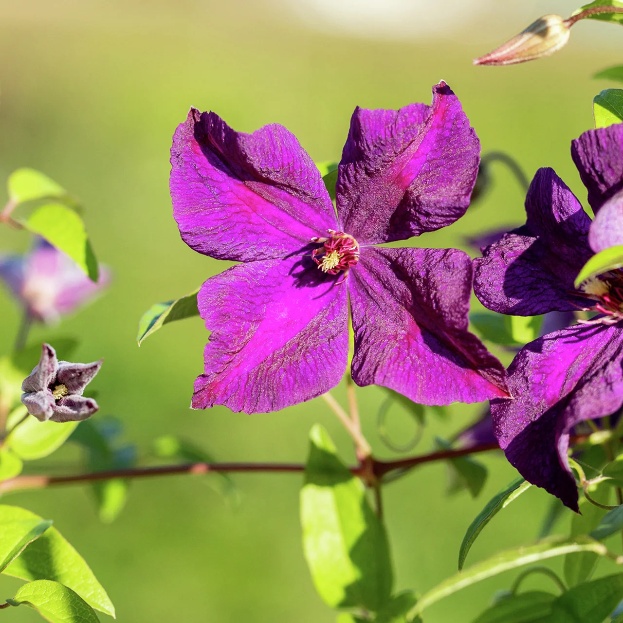 Die Clematis bevorzugt einen sonnigen bis halbschattigen Standort und lockeren, nährstoffreichen Boden. Besonders praktisch: Sie gehört zur Rückschnittgruppe 3, was bedeutet, dass ein jährlicher, kräftiger Rückschnitt im Spätwinter oder zeitigen Frühjahr genügt, um sie in Form zu halten und die Blüte zu fördern.