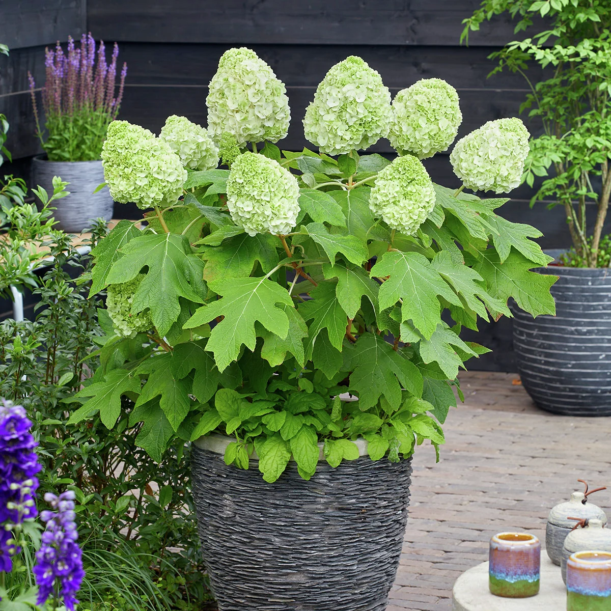 Sie erhalten diese dekorative Schönheit bei uns im 12 cm-Topf. Die Eichenblatt-Hortensie eignet sich als Solitärgehölz oder in Gruppenpflanzungen mit Ahorn oder Storchschnabel. Dabei sollte beachtet werden, dass die Pflanze bis zu 180 cm hoch und breit werden kann. Achten Sie bei einer Kübelpflanzung bitte darauf, dass das Pflanzgefäß immer zur aktuellen Größe der Pflanze passt.