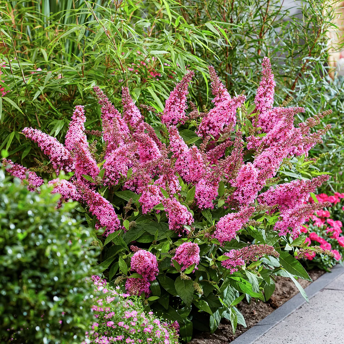 Diese kompakte Variante des klassischen Schmetterlingsflieders bietet zahlreiche Vorteile und passt ideal auf kleinere Balkone, Terrassen oder in Beete sowie einen Bauerngarten. Little Pink bildet im Sommer immer wieder an langen Rispen über lanzettlichem grünem Laub neue pinkfarbene Blüten aus und lässt damit Schmetterlinge & andere Nützlinge auf einer duftenden Blütenwelle des Glücks reiten. Pflanzen Sie den Zwerg-Schmetterlingsflieder Butterfly Candy® Little Pink zwischen März bis Oktober mit einem Pflanzabstand von 80 bis 100 cm in normalen Gartenboden. Der Düngebedarf ist mittel, ebenso ist der Wasserbedarf gering bis mittel, aber bitte vermeiden Sie Staunässe. Little Pink wirkt solitär, aber auch schön in Gruppen oder Kombination mit anderen Zwerg-Schmetterlingsfliedersorten, zwergigen Stauden oder Gräsern. Für optimale Startbedingungen im neuen Jahr lohnt sich eine Düngergabe im Frühjahr vor dem Austrieb und eine zweite Düngung im Sommer vor der Blütezeit. Wir empfehlen einen Rückschnitt im Frühjahr für einen reichen Blütenflor.