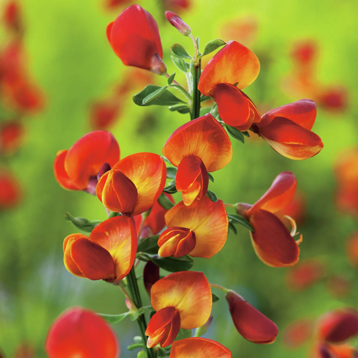 Der Cytisus scoparius 'Lena' ist ein sommergrünes Laubgehölze. Dank der Blüten, die von außen leuchtend rot und von innen tiefgelb sind, gibt es ein farbenfrohes Spektakel. Der Cytisus scoparius 'Lena' bekommt seine Blüten ab Mai, verliert diese aber schon im Sommer. Im September entstehen aus den Blüten schattenförmige Früchte. Das Laubgehölze erreicht eine Höhe von 150-200 cm. Er hat eine recht buschige Verzweigung und wächst vasenförmig nach oben hin breiter.