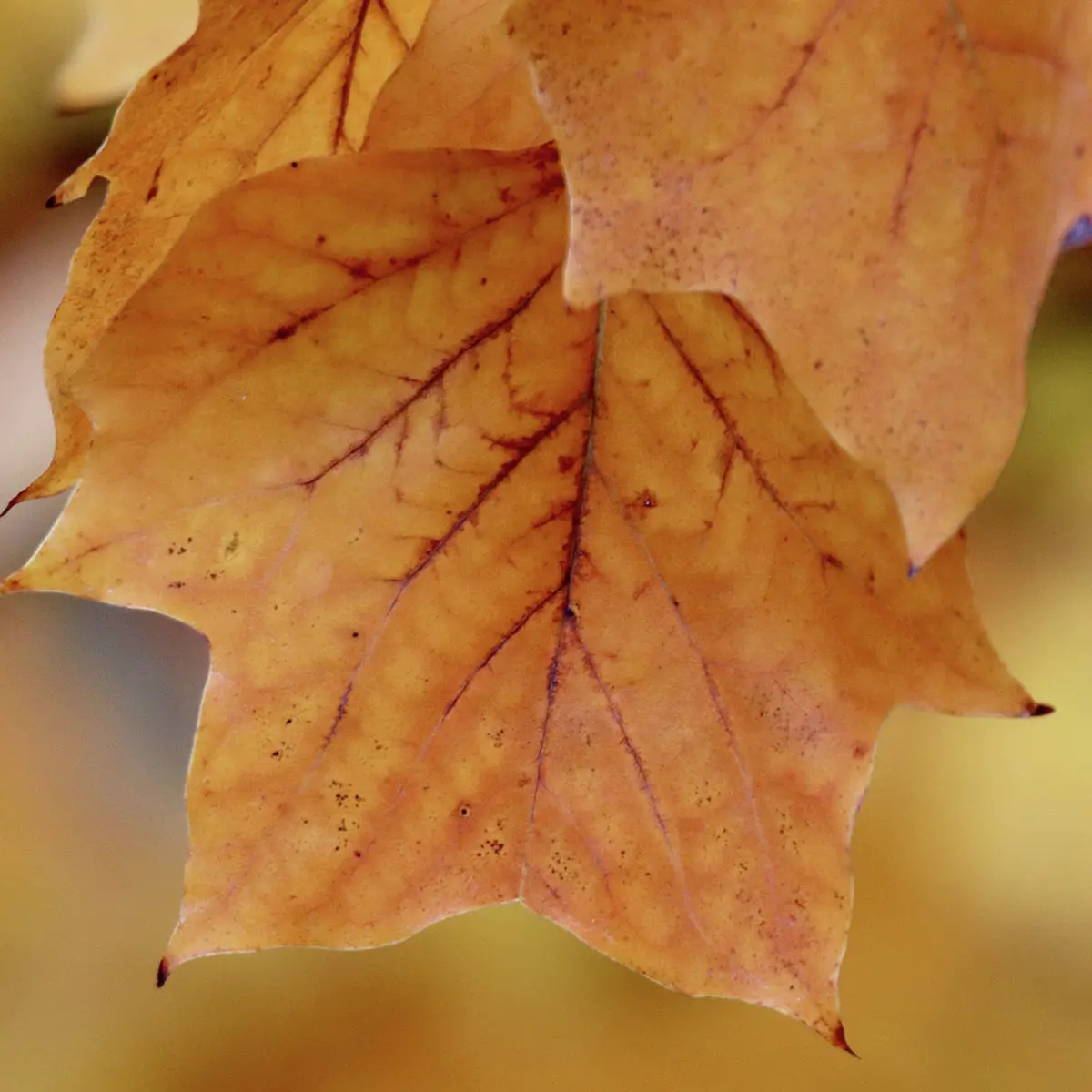 Die Blätter des Baums habe eine unverwechselbare Blattform und werden ca. 15 cm lang. Sie treiben in einem frischen Grün aus, wobei die Unterseite eine blaugrüne Farbe aufweist. Zum Herbst hin nimmt das Laub eine flammend goldgelbe bis gelbbraune Farbe an.