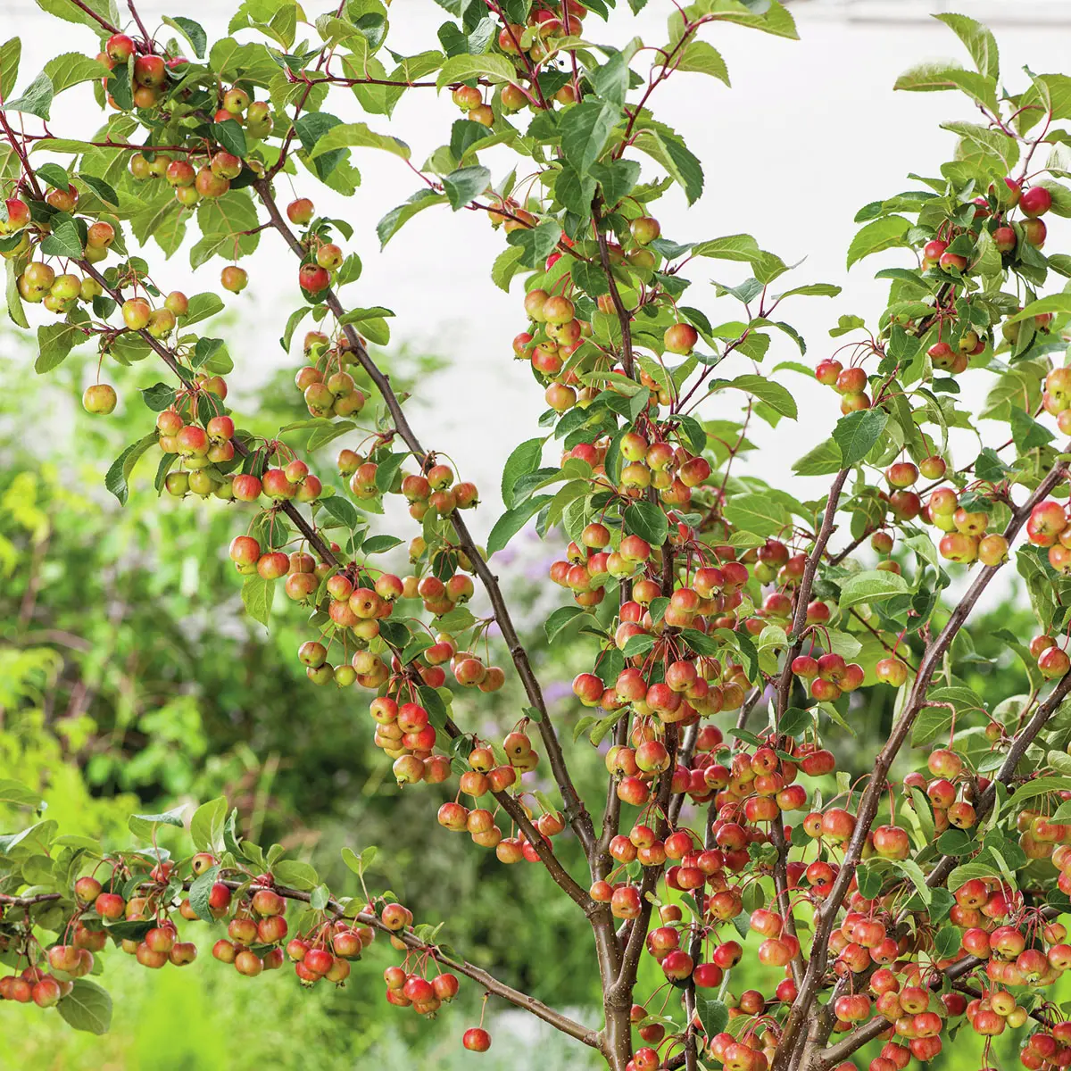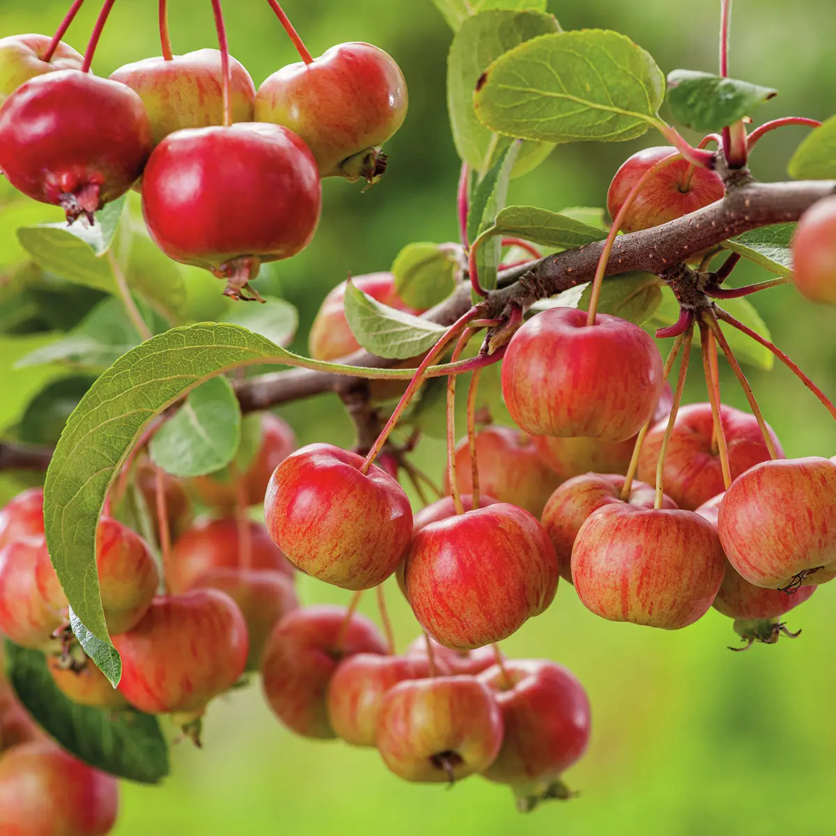Verwendung: Der Vogelfutter-Baum Evereste ist ein vielseitiges und wertvolles Ziergehölz. Neben der klassischen Einzelstellung als Solitär lässt er sich auch in Gruppenpflanzungen kultivieren. Er eignet sich somit genauso gut für den Hausgarten wie zum Beispiel auch für Streuobstwiesen – dort kann er als ein sehr guter Pollenspender für fruchttragende Apfelsorten eingesetzt werden, wobei er selbst nicht auf eine Fremdbefruchtung durch eine andere Sorte angewiesen ist. Die Früchte von Zierapfelbäumen sind grundsätzlich zwar essbar – allerdings ist ihr Geschmack meist nicht so gut, dass sich eine Ernte lohnen würde, weshalb viele die Früchte lieber als Zierde sowie nahrhaftes Vogelfutter am Baum belassen.