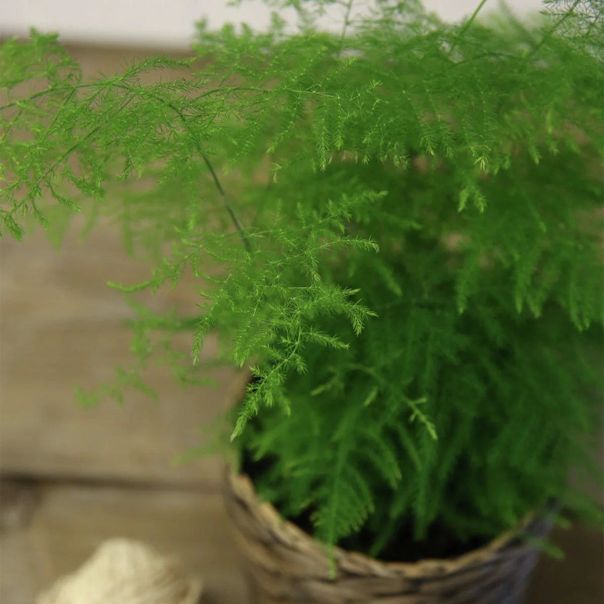Wie zarte Federn, so wirkt das Laub des Feder- oder auch Zierspargels und versprüht dadurch in unseren Räumen eine angenehme Leichtigkeit. Dazu ist es frischgrün und deshalb wie gemacht für Menschen, die grüne Akzente lieben. Kaum zu glauben, dass diese zarte Schönheit auch noch pflegeleicht und mit einem hellen Platz zufrieden ist. Nur mit der Mittagssonne, da hat der Feder-Spargel es nicht so, denn das feine Blattwerk verbrennt leicht.