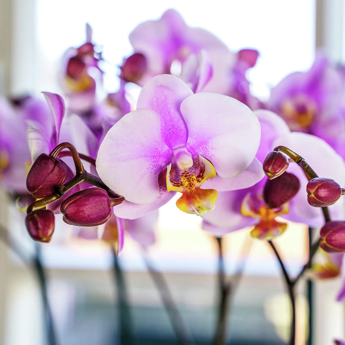 Orchideen brauchen neben Ihrer Liebe viel Licht und Luft. Ein heller bis halbschattiger Standort ohne direkte Sonneneinstrahlung ist ideal. Dort können sie das ganze Jahr über Blüten ausbilden. Orchideen benötigen Spezialerde und passende Töpfe. Mäßige zimmerwarme Wassergaben mit kalkarmem Wasser, hin und wieder eine Orchideendüngergabe und ein regelmäßiges Entfernen eingetrockneter Blütenstiele und verblühter Blüten gehören zur „Beautyroutine“ der Phalaenopsis. Schneiden Sie die Stängel aber nicht vollständig ab. An den Knospen am Grund der alten Stängel bilden sich oft neue Triebe. Eine ausreichende Luftfeuchtigkeit sichern Sie durch das Besprühen des Substrats oder den Wurzeln, eventuell dem Badezimmer als Standort (bitte an die entsprechenden Lichtverhältnisse denken!) und das regelmäßige Entstauben der Blätter. Vermeiden Sie Zugluft oder trockene Heizungsluft, um ein optimales Wachstum zu gewährleisten. Wenn möglich, lassen Sie die Temperaturen nachts absinken. Die immergrüne Pflanze dankt es Ihnen über viele Jahre und mit einer sensationellen Blütenpracht.