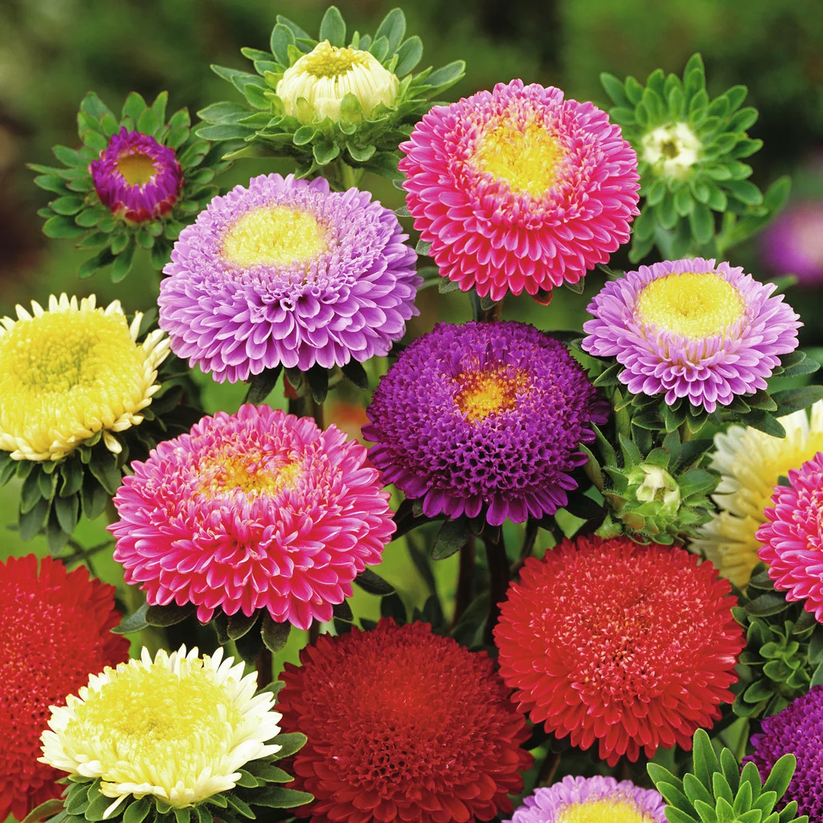 Tipp: Niedrig und kompakt wachsende Sommerastern mit kleinen Pompon-Blüten in vielen Farben. Für Töpfe, Kästen, Ampeln und fürs Beet. Die kurzgestielten Blüten eignen sich auch zum Schnitt.