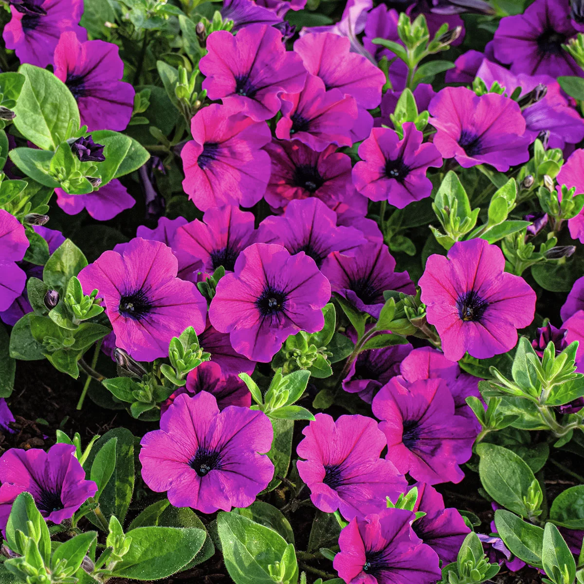 - Wetterfeste Hängepetunie mit purpurroten Blüten