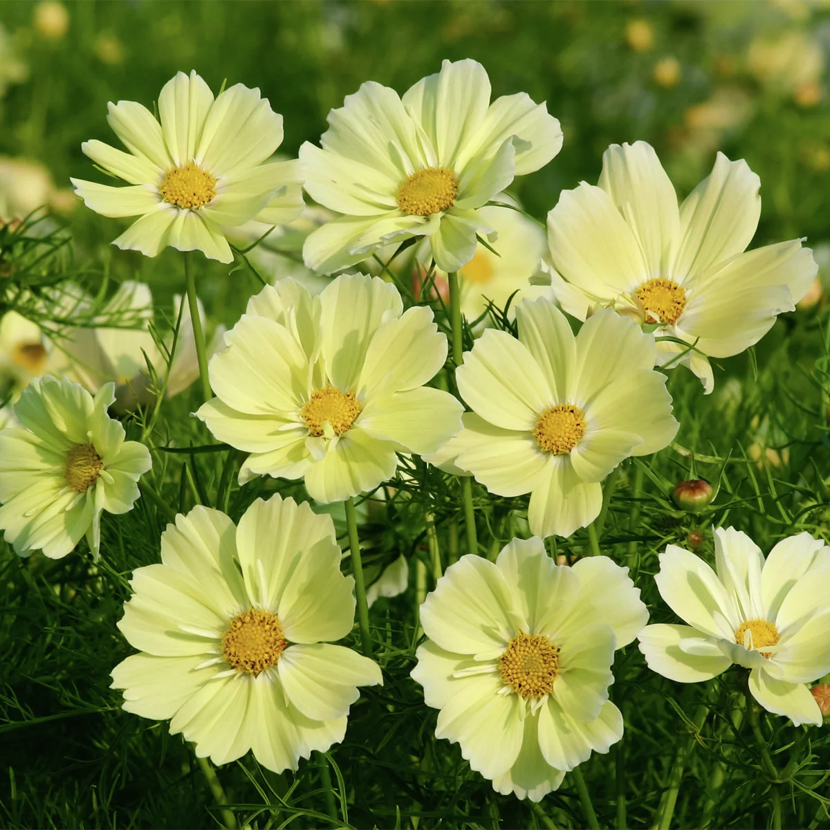 Tipp: Xanthos ist eine niedrig wachsende Cosmee. Sie blüht in einem für Cosmeen einzigartigen Vanille-Gelb. Ideal für Töpfe, Kästen, Beete und dank der stabilen Stängel auch zum Schnitt. Dunkelkeimer, Saattiefe einhalten und bei Vorkultur bis zur Keimung abdecken und gleichmäßig feucht halten. Höhe 50–60 cm, einjährig.