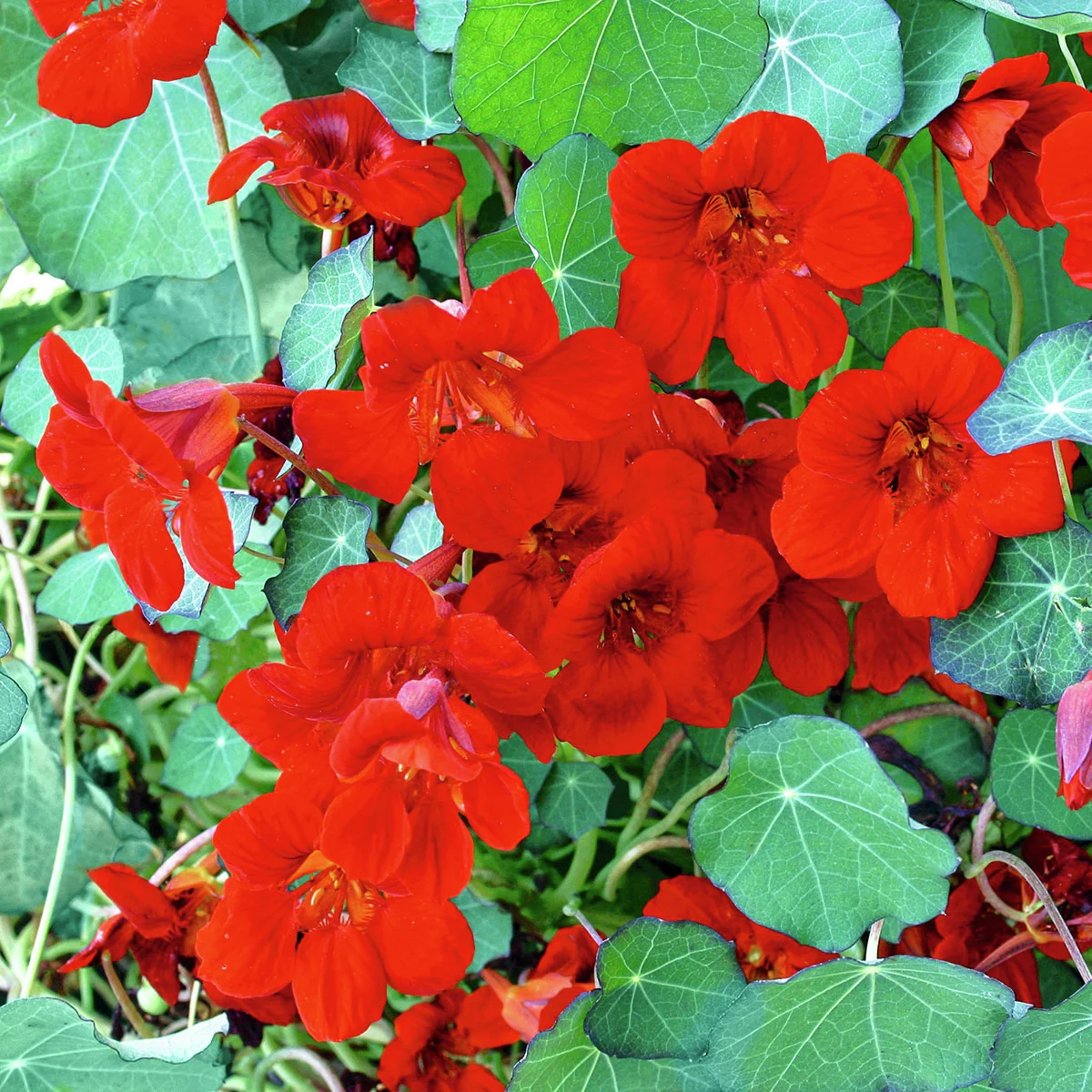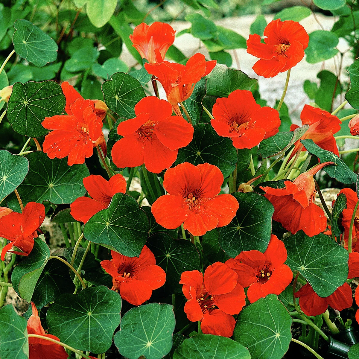 Diese kompakte Sorte eignet sich besonders gut für Ampeln, Balkonkästen und Töpfe, aus denen die Pflanzen nicht allzu sehr herauswachsen sollen. Hier bedeckt sie die Erde ebenso schön dicht wie als Bodendecker im Beet. Sie ist auch ein hübscher und gut verträglicher Begleiter z.B. für Kohlarten im Hochbeet. Kulinarisch macht die Kapuzinerkresse besonders in Salaten eine gute Figur, ziert mit der leuchtenden Farbe ihrer Blüten und verleiht zugleich eine feine Würze.