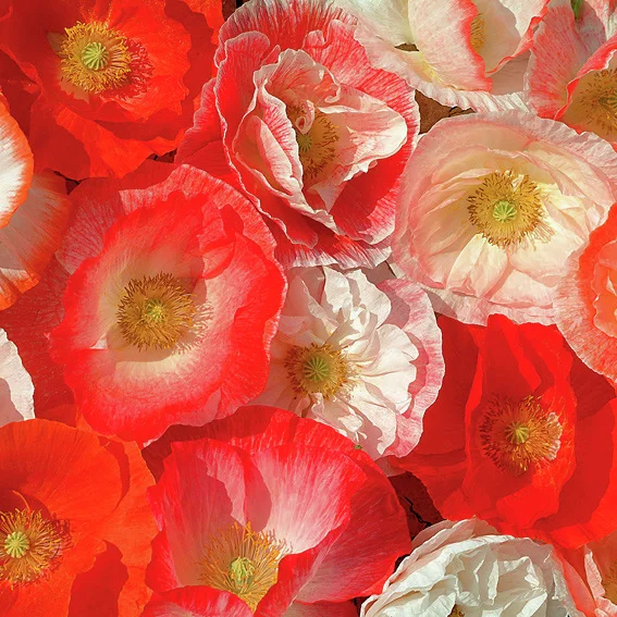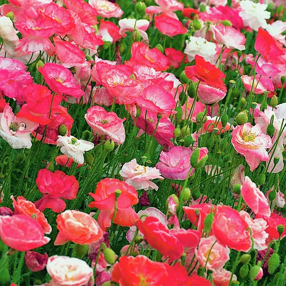 Eine Garten-Züchtung des Klatsch-Mohns, die sich durch ihre halbgefüllten und gefüllten Blüten in Pastellfarben auszeichnet. Die seidig glänzenden Blüten mit weißen, rosafarbenen und roten Farbtönen sind oft vielfach zweifarbig oder fein geädert.