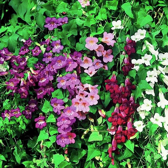 An den zarten Blüten des Kletternden Löwenmäulchens können Sie wenn es geschützt steht, bis Weihnachten Ihre Freude haben. Es ist einfach zu ziehen und mag einen etwas sonnigen Standort. Dann erscheinen die Blüten in attraktiven, ausgewählten Farben ununterbrochen auf frischgrünem Laub. Ein hübscher Ranker für Garten, Terrasse und Balkon. Es kann auch überwintert werden.