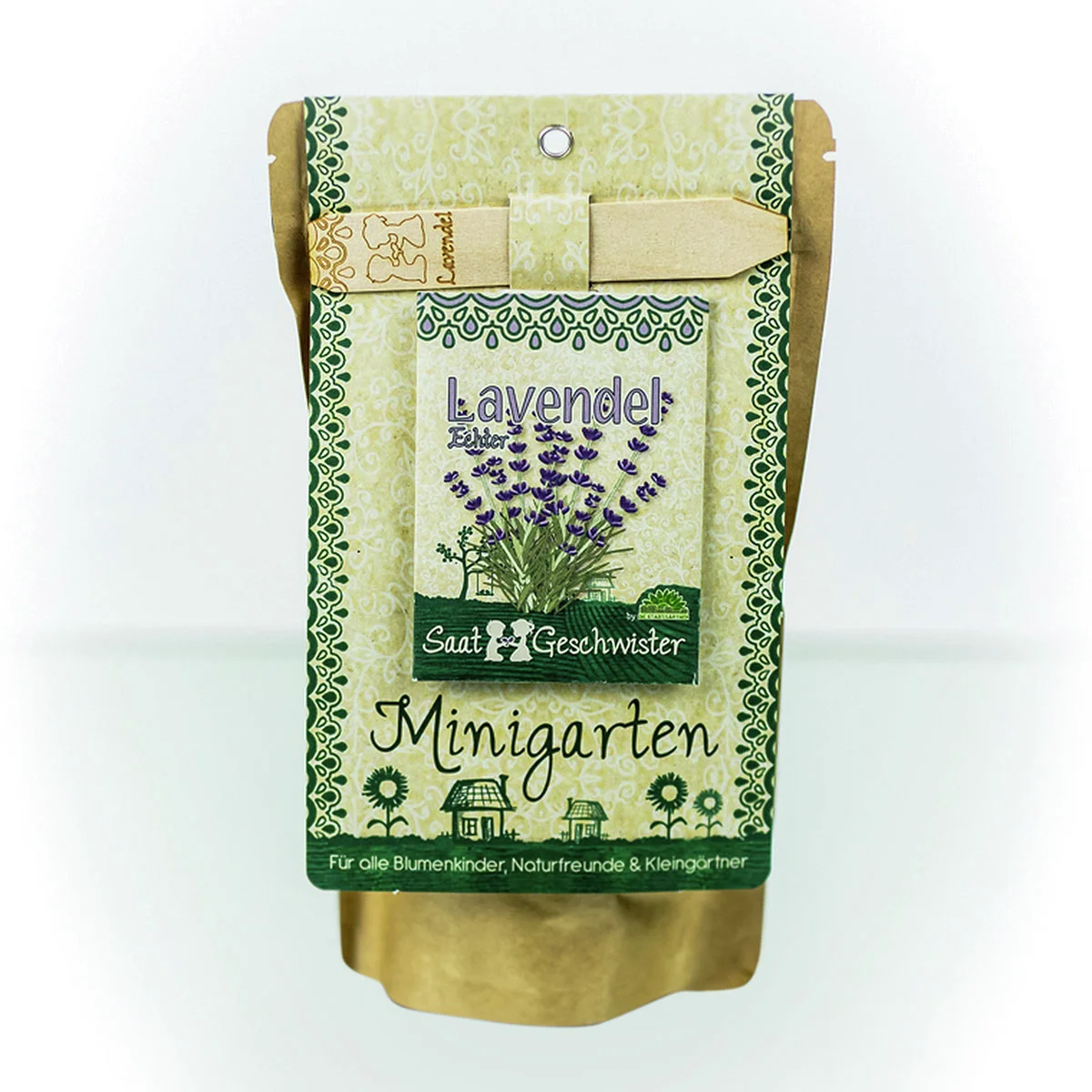 Der Minigarten enthält Erde, hochwertiges Lavendel-Saatgut und ein passendes Pflanzstäbchen. Verpackt in eine wasserfeste Tüte als Pflanz- oder Anzuchttopf.