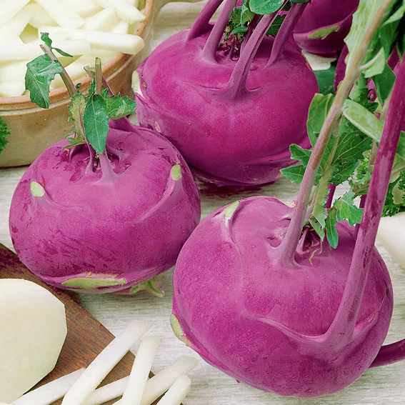 Tipp: Kolibri F1 ist eine blaue, schnellwachsende Profi-Sorte für die ganze Freilandsaison. Die platzfesten, zarten, flachrunden Knollen werden nicht holzig und bringen auch unter ungünstigen Bedingungen noch gute Ernten.