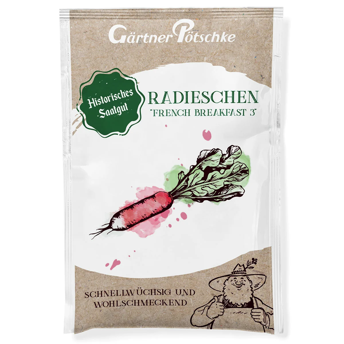 French Breakfast 3 ist schnellwüchsig und bildet halblange, mildwürzige rote Radieschen mit weißer Spitze. Sie stecken voller Vitamine und Mineralstoffe. Die alte Sorte kann von Frühjahr bis Herbst angebaut werden.