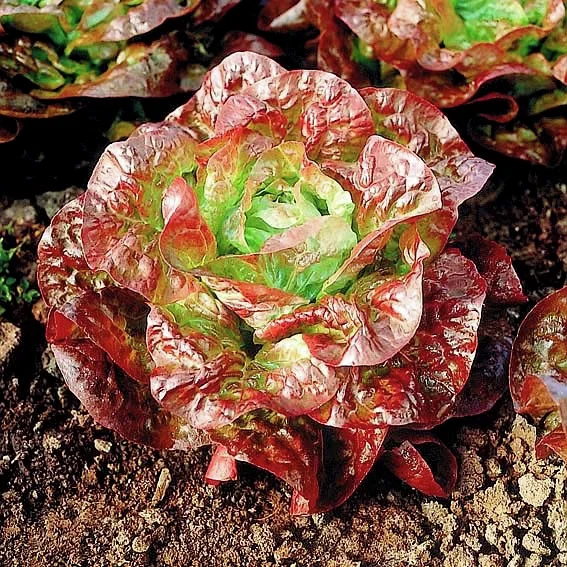 Resistenter roter Freiland-Kopfsalat mit grünem Herz.