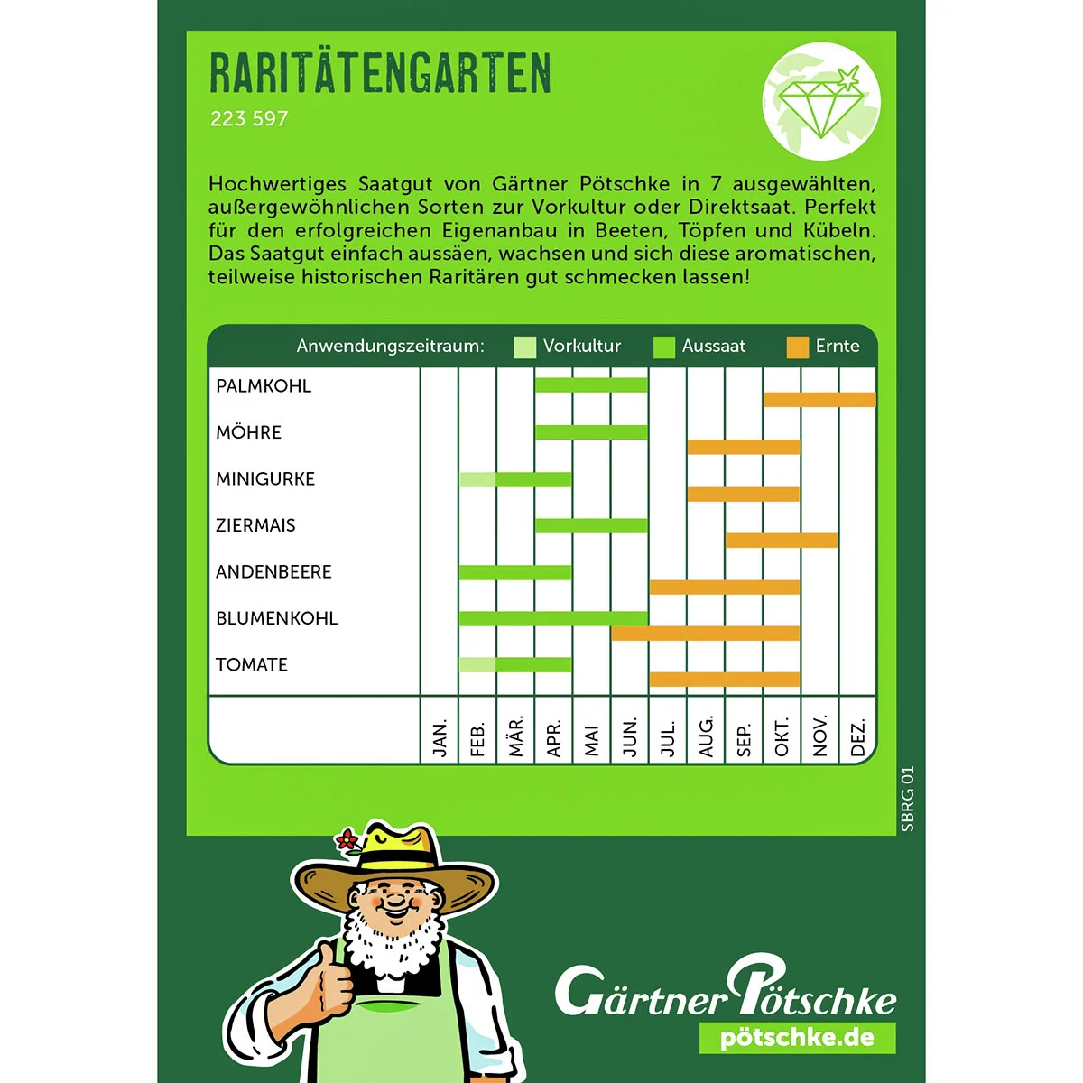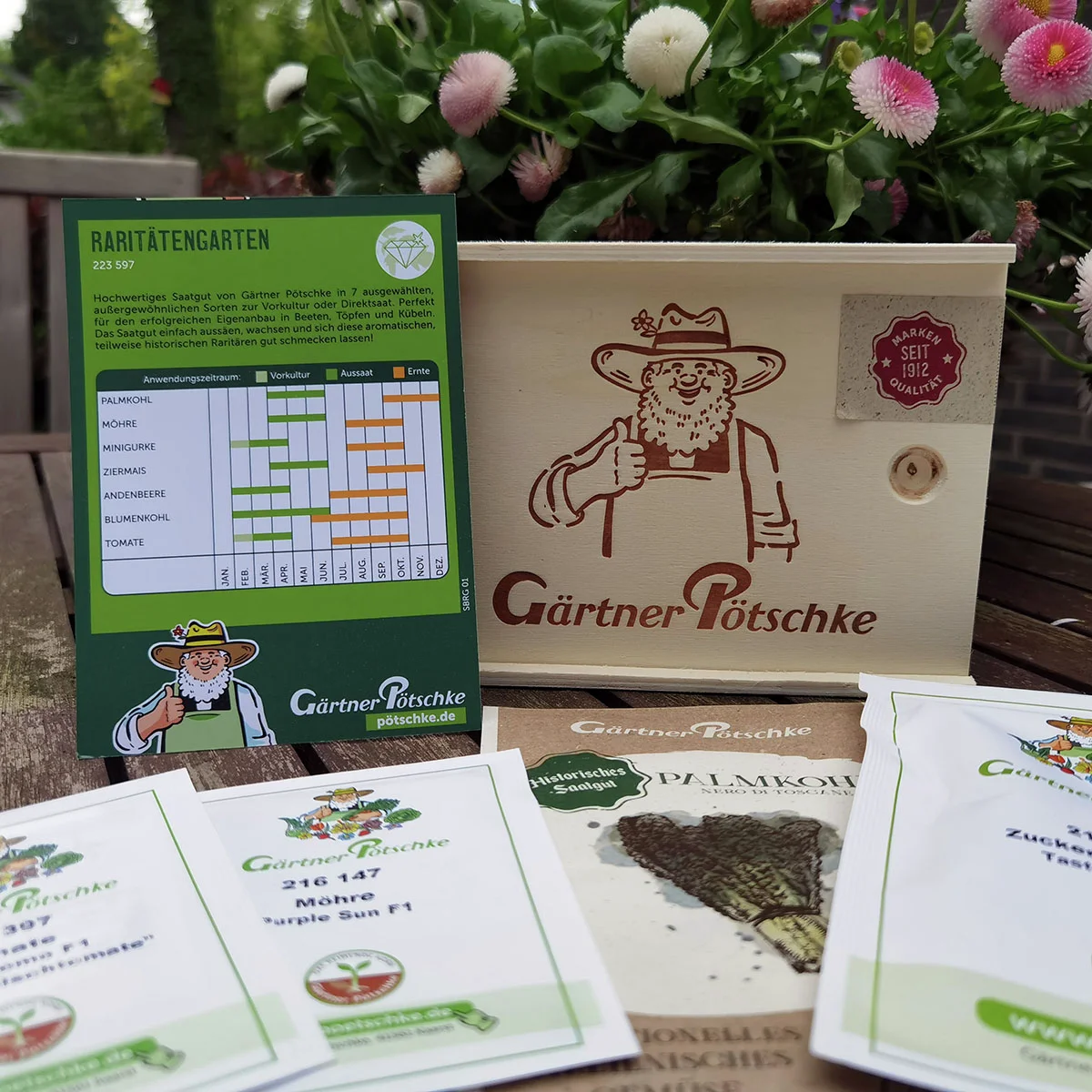 Hochwertiges Saatgut von Gärtner Pötschke in 7 ausgewählten, außergewöhnlichen Sorten zur Vorkultur oder Direktsaat. Perfekt für den erfolgreichen Eigenanbau in Beeten, Töpfen und Kübeln. Das Saatgut einfach aussäen, wachsen und sich diese aromatischen, teilweise historischen Raritären gut schmecken lassen!