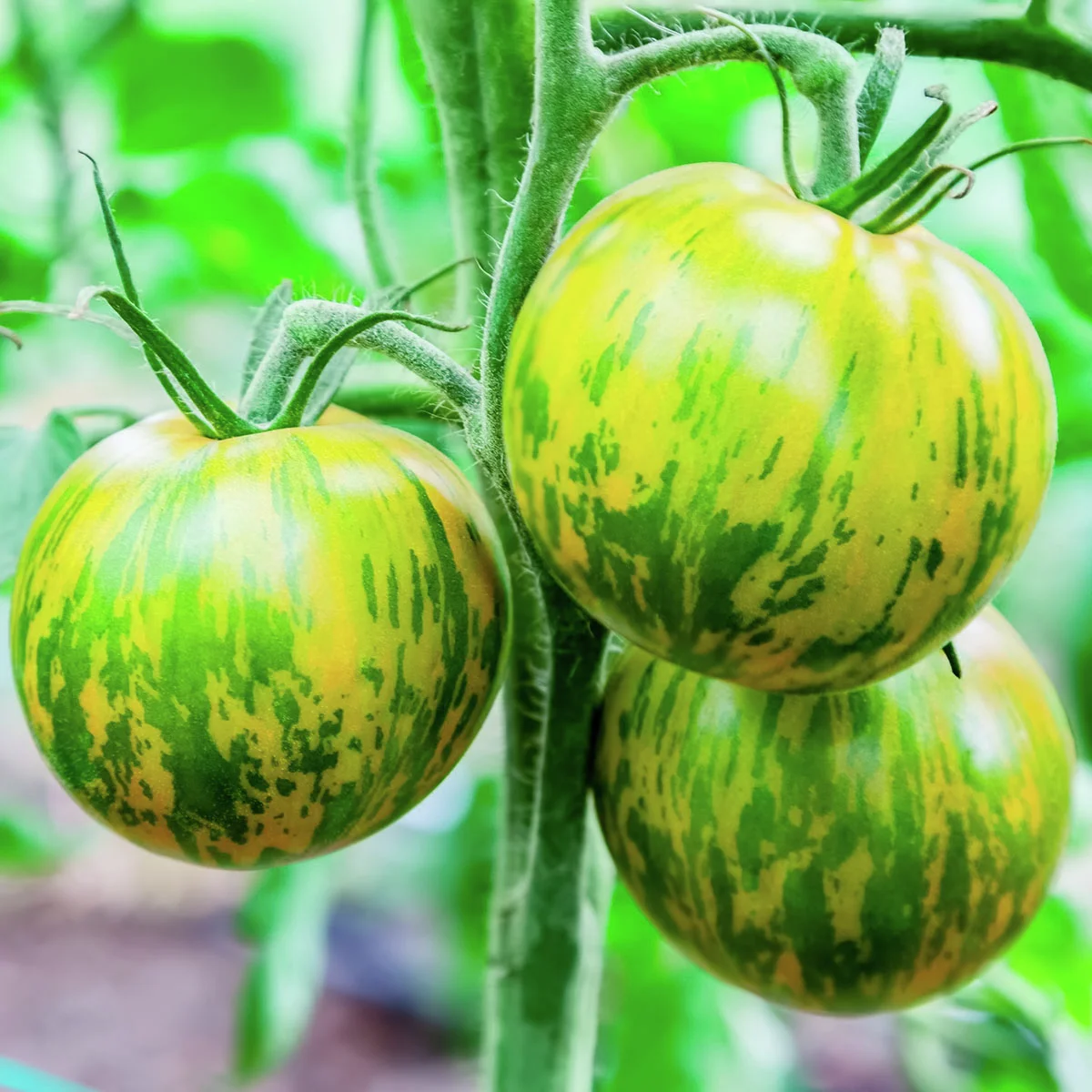 Tipp: Green Zebra ist geschmacklich und optisch eine der besten Salattomaten. Die in voller Reife in gelb-grünen Streifen geflammt leuchtenden Tomaten sind ausgesprochen attraktiv. Eine dünne Schale umschließt die eher weiche, aber platzfeste Frucht. Das smaragdgrüne saftige Fruchtfleisch ist von feinem Geschmack - das süß-würzige Aroma paart sich mit einer angenehm ausgeglichenen fruchtigen Säure.