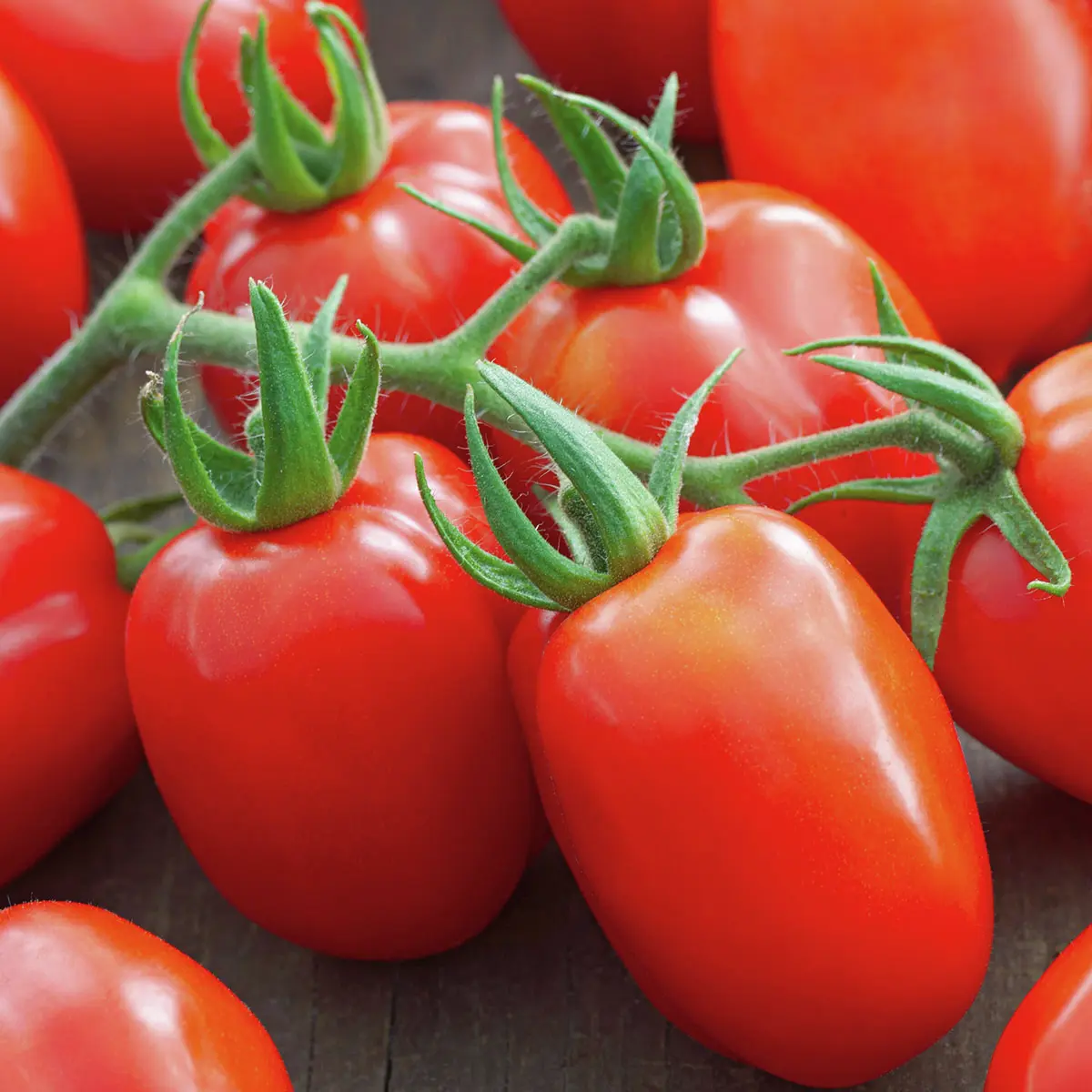 Ernten Sie von Juli bis Oktober sonnengereifte Tomaten mit fester Schale und herzhaft-saftigem Fruchtfleisch der Sorte Roma VF, auch Super Roma VF genannt. Lassen Sie sich diese altbewährte Pflaumentomate frisch im Salat, auf dem Brot oder verarbeitet zu Saft oder Soße schmecken. Auch auf dem Grill weiß Roma VF zu begeistern. An einem sonnigen Standort mit guter Nährststoffversorgung und einem Pflanzabstand von 50–60 cm wird Roma VF 150–200 cm hoch.