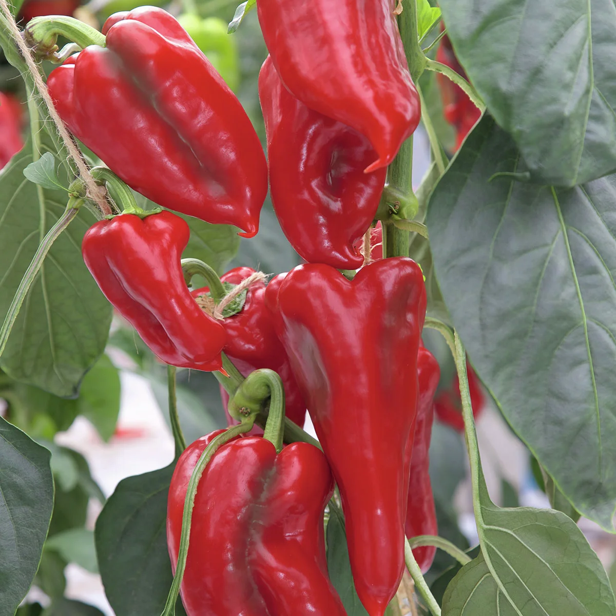 Die alte ungarische Paprikasorte Kypiya UV Vertus bildet aromatische, dickwandige Früchte, die sich zum Grillen, Füllen und zum Rohverzehr eigenen. Die Paprikas werden bis zu 15 cm lang und reifen von Grün nach Rot. Auch gut für den Anbau im Kübel geeignet.