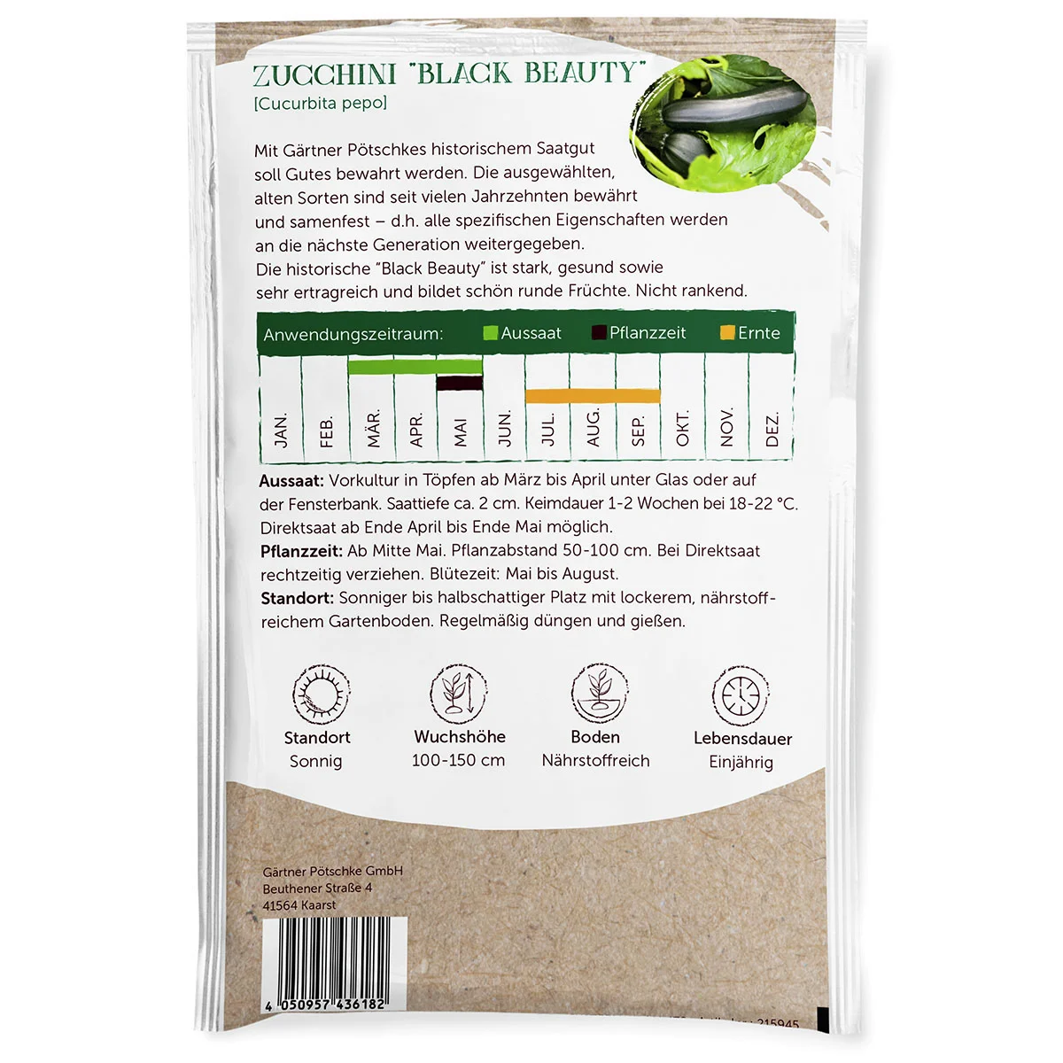 Die historische Zucchinisorte ist stark, gesund sowie sehr ertragreich und bildet schön runde Früchte. Black Beauty zählt zu den nicht rankenden Zucchini-Pflanzen und eignet sich sowohl für das Freiland wie für den Anbau auf Terrasse und Balkon.