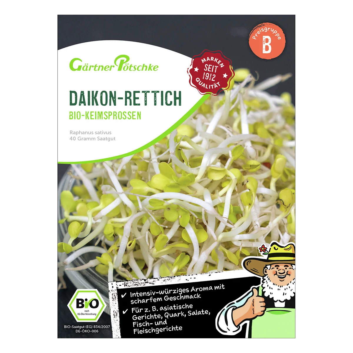Im Aroma intensiv-würzig mit scharfem Geschmack passen die roh genossenen Daikon-Rettichkeimsprossen zu vielerlei Gerichten und peppen sie ordentlich auf. Nährstoffreich und kalorienarm sind sie aus der modernen Superfood-Küche oder asiatischen Wokgerichten nicht wegzudenken. Für die einfache und schnelle Keimsprossenanzucht.