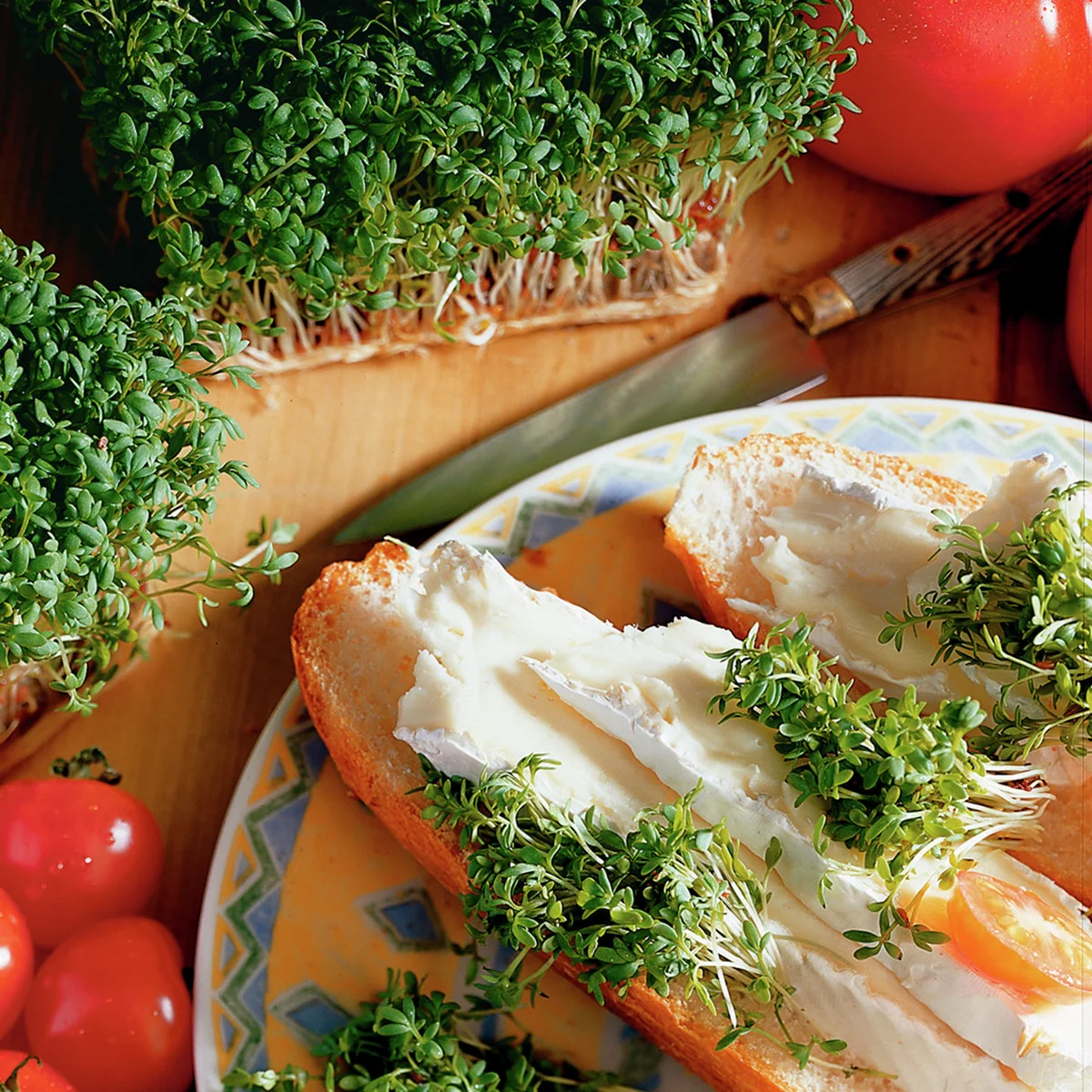 Tipp: Gartenkresse eignet sich für die ganzjährige Sprossenanzucht in Schalen oder mit dem Kresse-Igel. Auch für Salat-Kresse aus dem Garten geeignet.