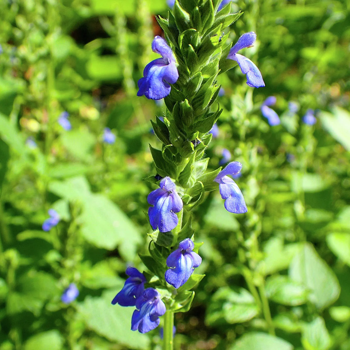 Grüne Blätter und hübsche blaue Salvien-Blüten, das sind die Kennzeichen der mexikanischen Chia-Pflanze.