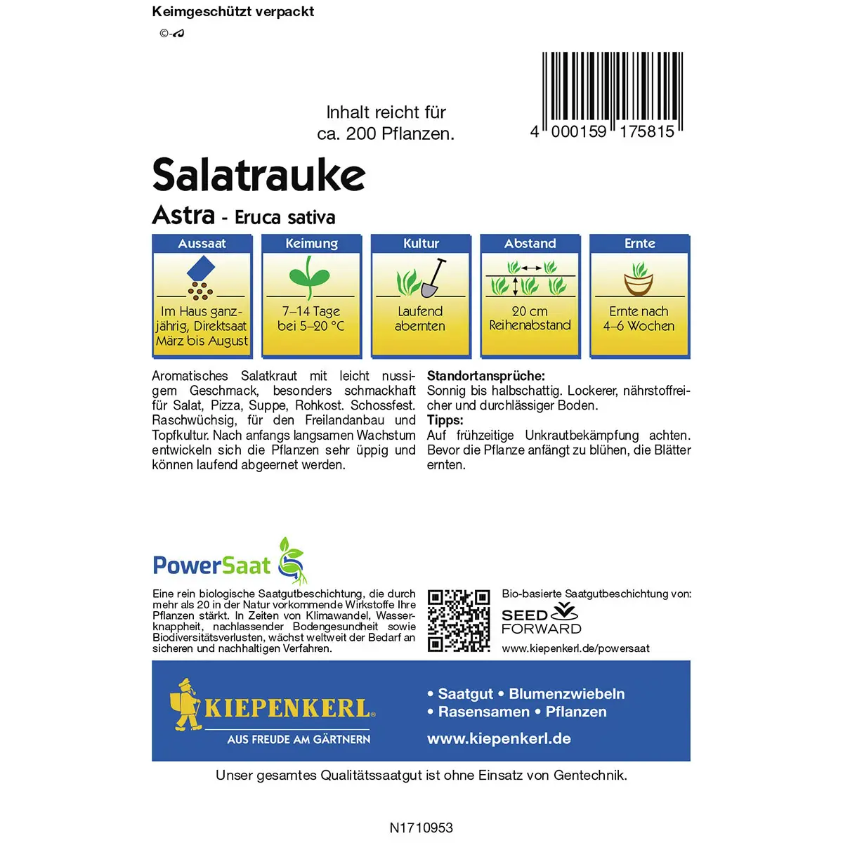 Nicht nur in der mediterranen Küche ist die Salatrauke ein gern gesehener Gast. Auch bei uns kommt das fein-nussige Aroma im Salat, auf der Pizza oder im selbst gemachten Pesto wunderbar zur Geltung. Astra schosst nicht, wächst rasch und üppig in Beet, Kasten & Topf.