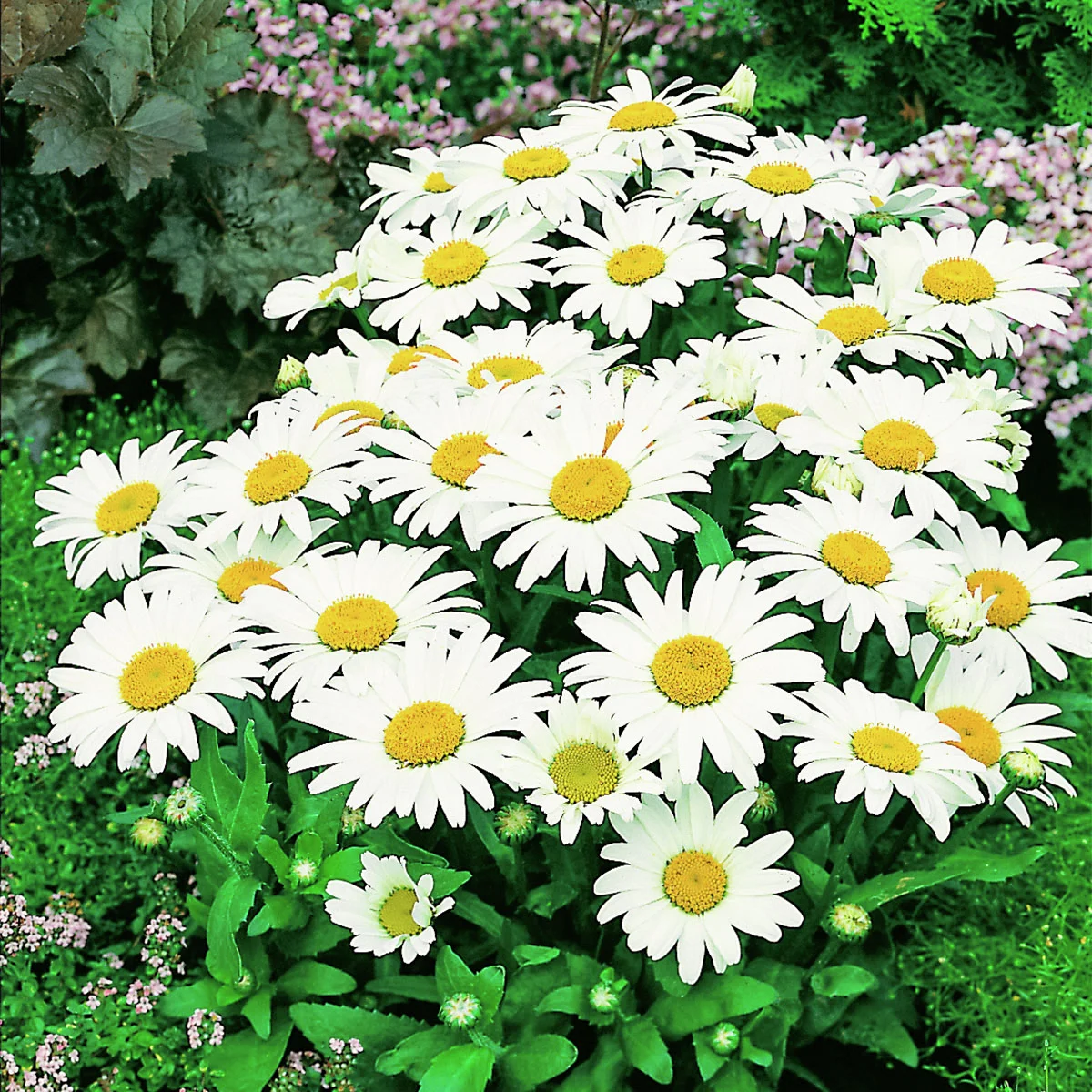 Riesige weiße Blüten mit gelber Mitte sind das Kennzeichen der Margerite Western Star Taurus. Gerne lockt sie bunte Schmetterlinge an und ist dabei eine der bienenfreundlichsten Stauden. Verzweigt stark und knickt im Sommerwind nicht ab. Ein echter Sommerbote und damit perfekt für Ihre Kübel, später ausgepflanzt im Beet.