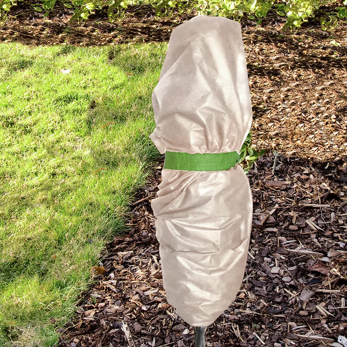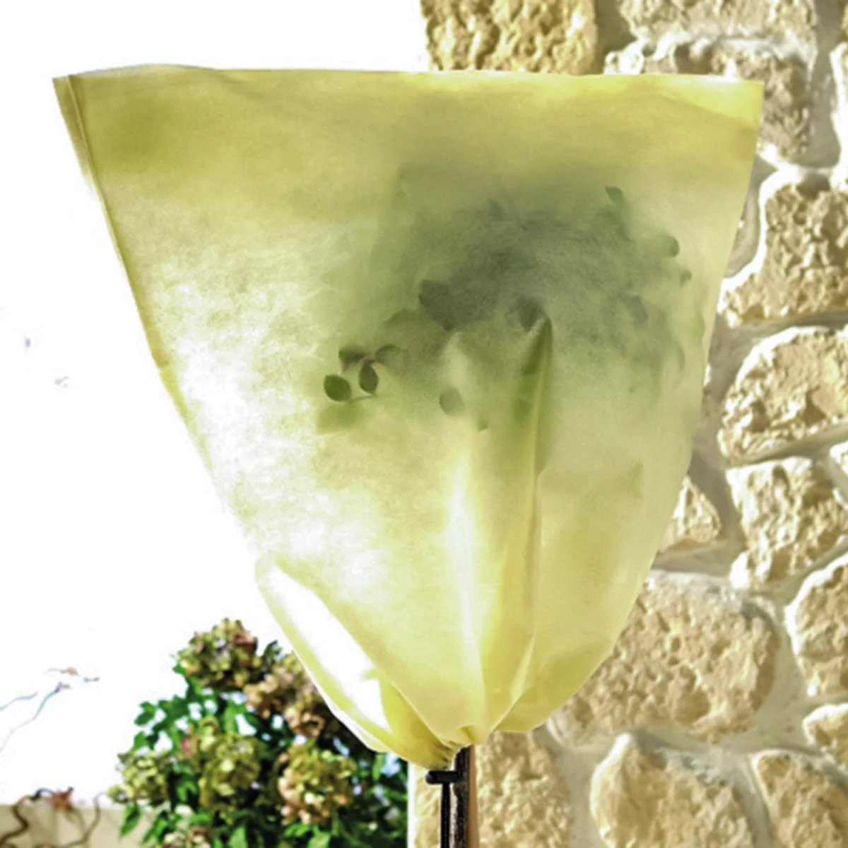 Durch den Schnürverschluss können sie das Ast- und Blattwerk bequem einpacken, ohne dieses zu knicken oder zu brechen. Durch das angebrachte Zugband am unteren Ende können Sie die Säcke gut am Pflanzenstamm oder Blumentopf fixieren.