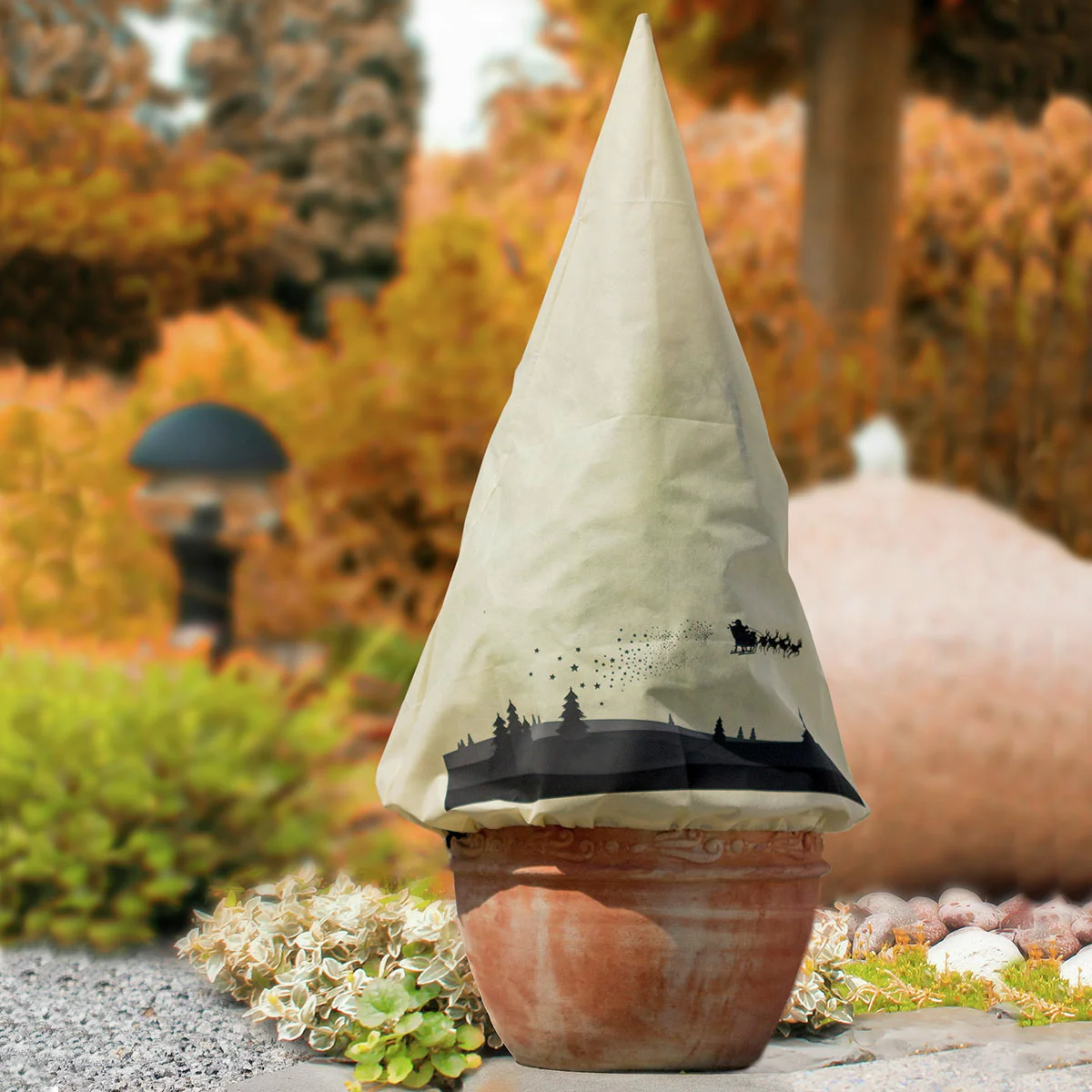 In sanftem Beige und mit stimmungsvollem Schlittenmotiv schirmt diese Winterschutzhaube empfindliche Pflanzen aller Art zuverlässig gegenüber kalten Temperaturen ab. Zugleich bietet sie ideale Bedingungen für ein gesundes Wachstum. Sie ist aus umweltfreundlichem und robustem Vlies gefertigt.