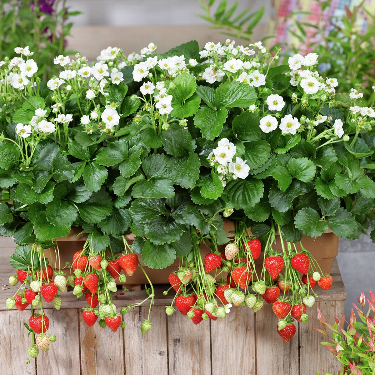 Der Star unter den Erdbeeren begeistert mit großen, weißen Blüten. Doch nicht nur optisch ist die Balkon-Erdbeere ein Hit, ihre leckeren Beeren laden auch zum Naschen ein. Dazu ist der Blüher äußerst pflegeleicht und winterhart. Freuen Sie sich jedes Jahr aufs Neue auf traumhaft schöne Blüten und frische Erdbeeren! Reifezeit ab Juni.