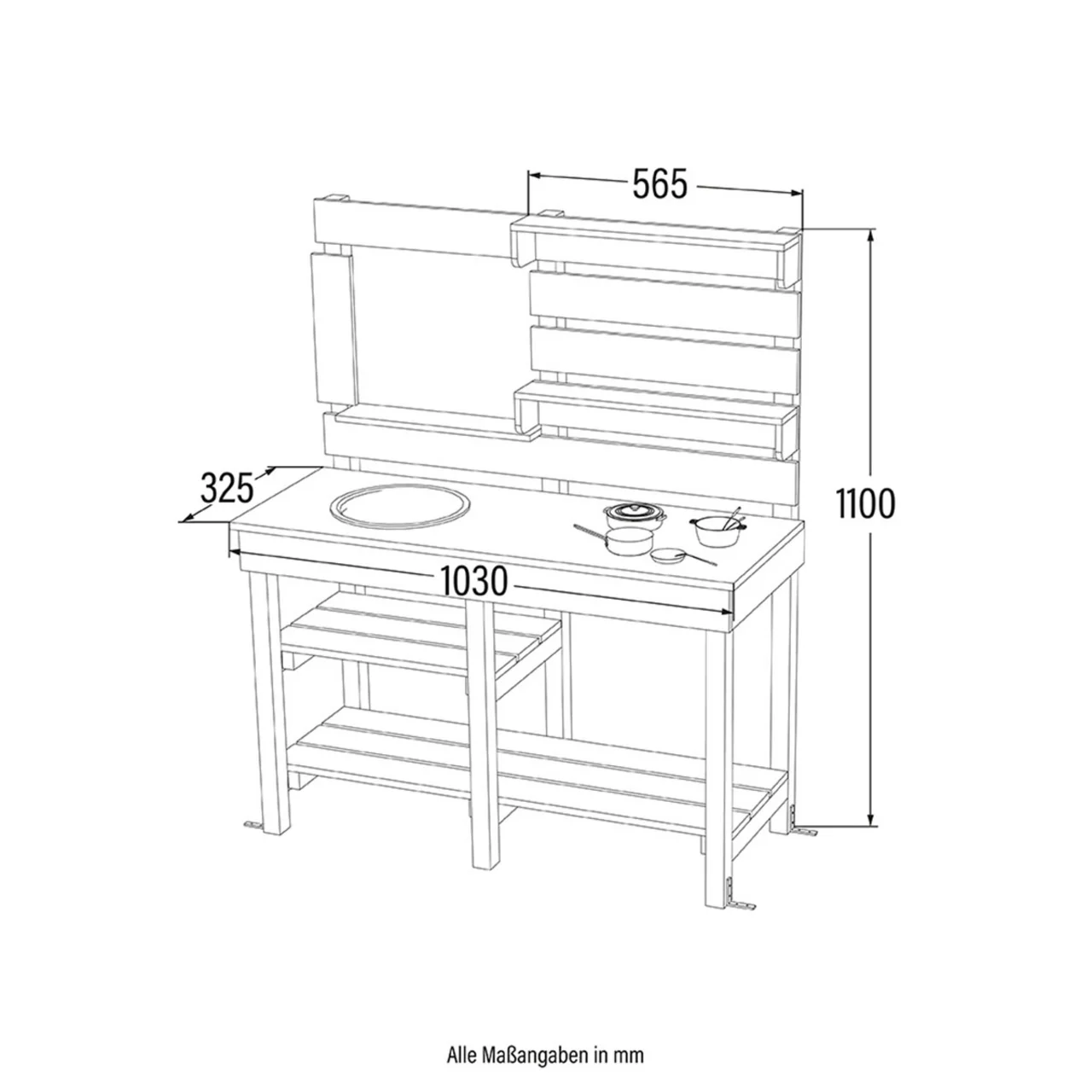 Praktischer Stauraum sorgt dafür, dass nach dem Spielen alles ordentlich verstaut werden kann. Der Einsatz im Freien ermöglicht es Kindern, mit Wasser, Sand und Naturmaterialien zu experimentieren – ganz ohne Sorge um Ihre Wohnungseinrichtung.