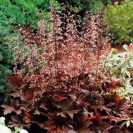 Suchen Sie einen extravaganten Bodendecker, der selbst noch im Winter ziert, dann ist das Purpurglöckchen Palace Purple genau der richtige Kandidat für Ihren Garten. Sein dunkelrotes Laub und der buschige Wuchs ist ideal geeignet, um Staudenbeete optisch aufzulockern und schöne Kontraste zu kreieren. Die Blattschmuckstaude kann zudem auch als Bodendecker verwendet werden und ist eine gern angeflogene Landebahn für heimische Insekten.