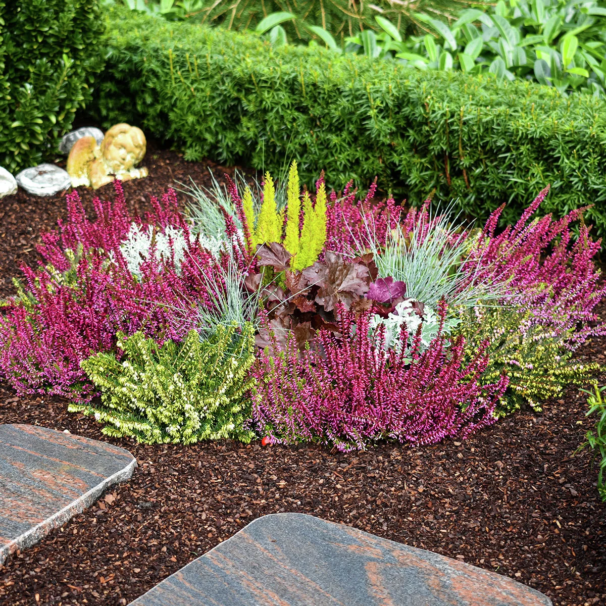 Mit diesem wunderschönen, aufeinander Pflanzenset zur Grabbepflanzung halten Sie die Erinnerung an Ihre Lieben auf die schönste Weise wach. In eine dekorative Schale oder direkt aufs Grab gepflanzt schmückt es stilvoll von Juli bis Februar.